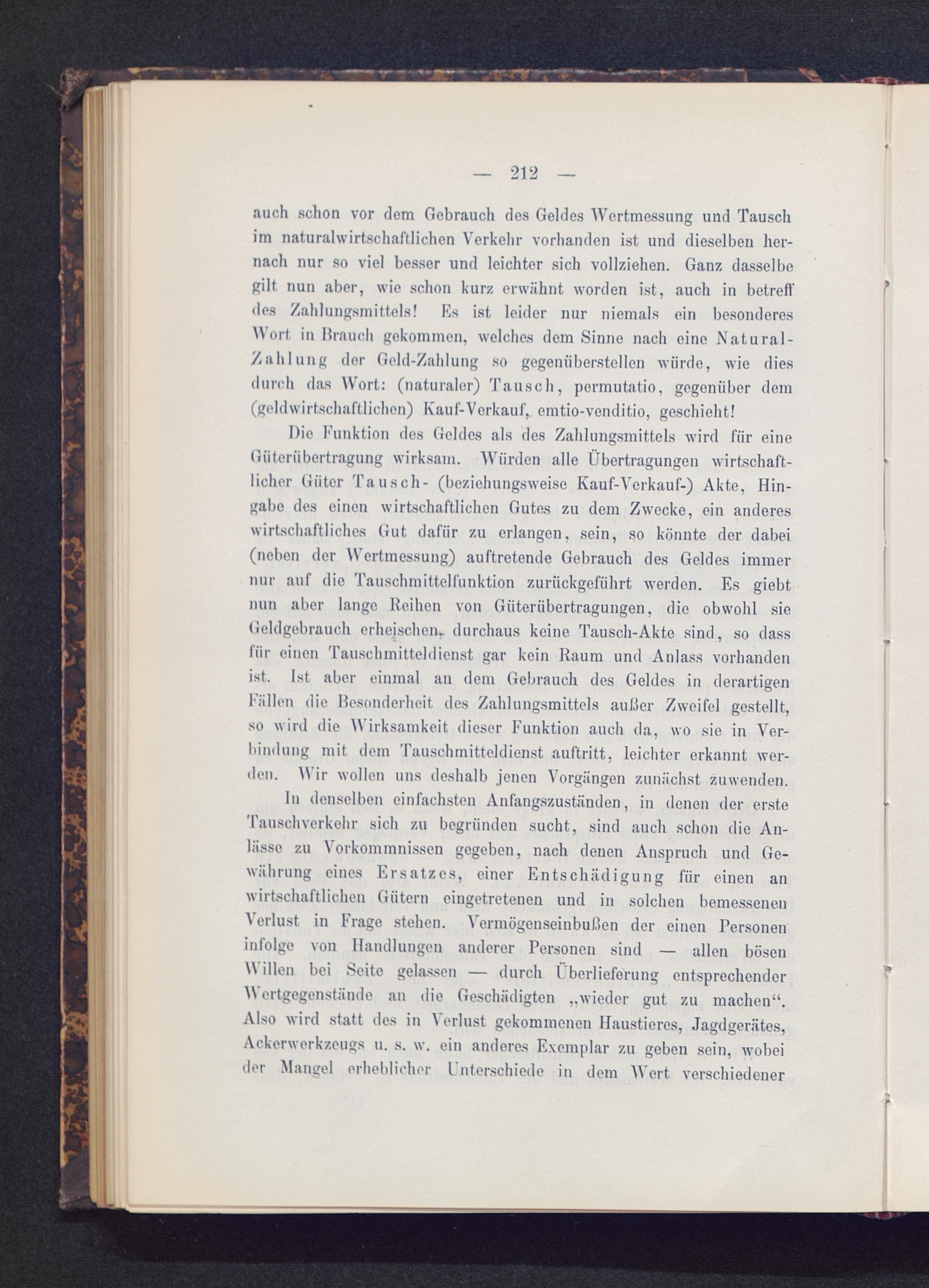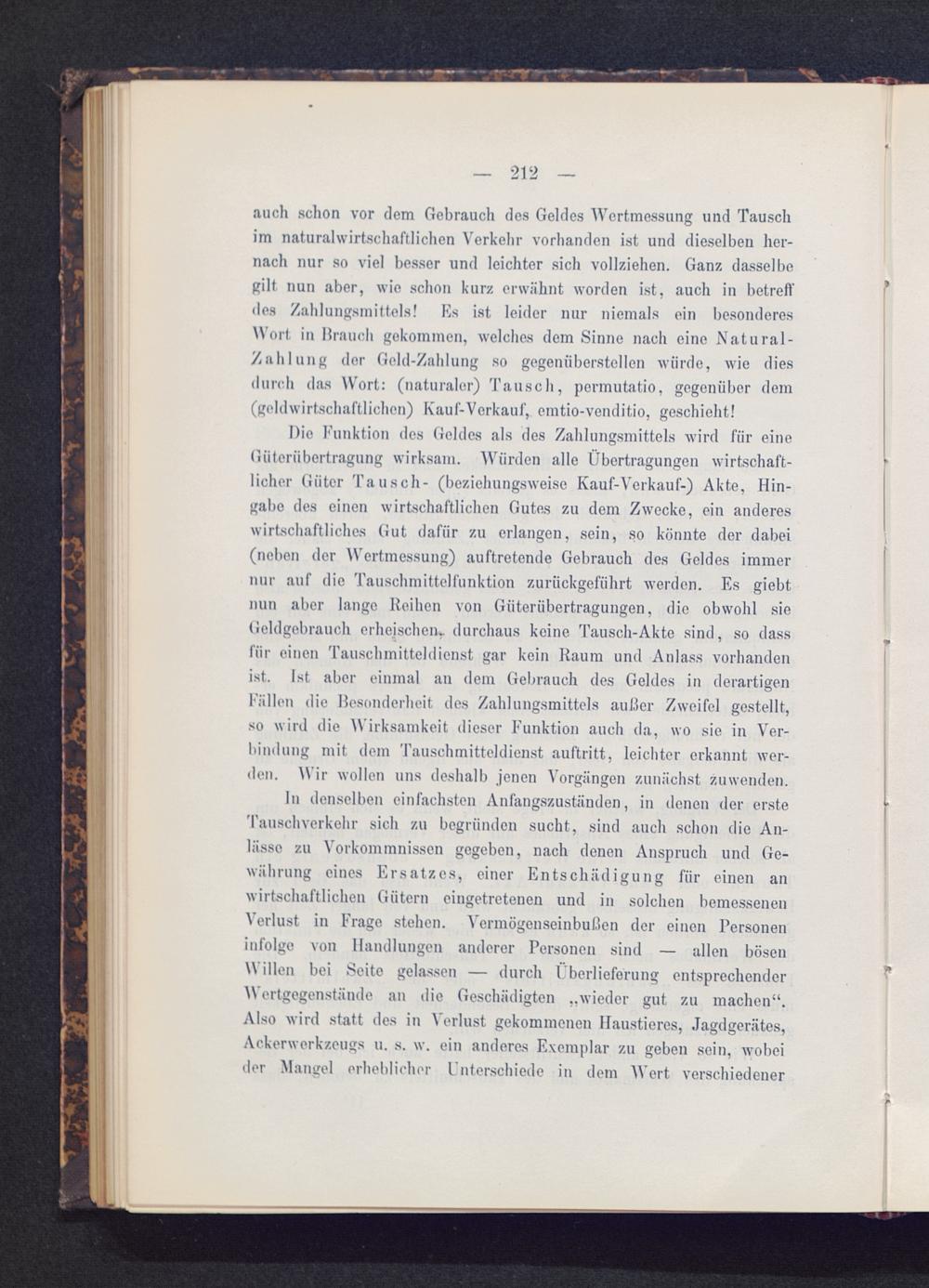 auch schon vor dem Gebrauch des Geldes Wertmessung und Tauschim naturalwirtschaftlichen Verkehr vorhanden ist und dieselben her-nach nur so viel besser und leichter sich vollziehen. Ganz dasselbegilt, nun aber, wie schon kurz erwähnt worden ist, auch in betreffdes Zahlungsmittels! Es ist leider nur niemals ein besonderesWort in Brauch gekommen, welches dem Sinne nach eine Natural-Xahlung der Geld-Zahlung so gegem'iberstcllen würde, wie diesdurch das Wort: (naturaler) Tausch, permutatio, gegenüber dem(geldwirtschaftlichen) Kauf-Verkauf, emtio-venditio, geschieht!