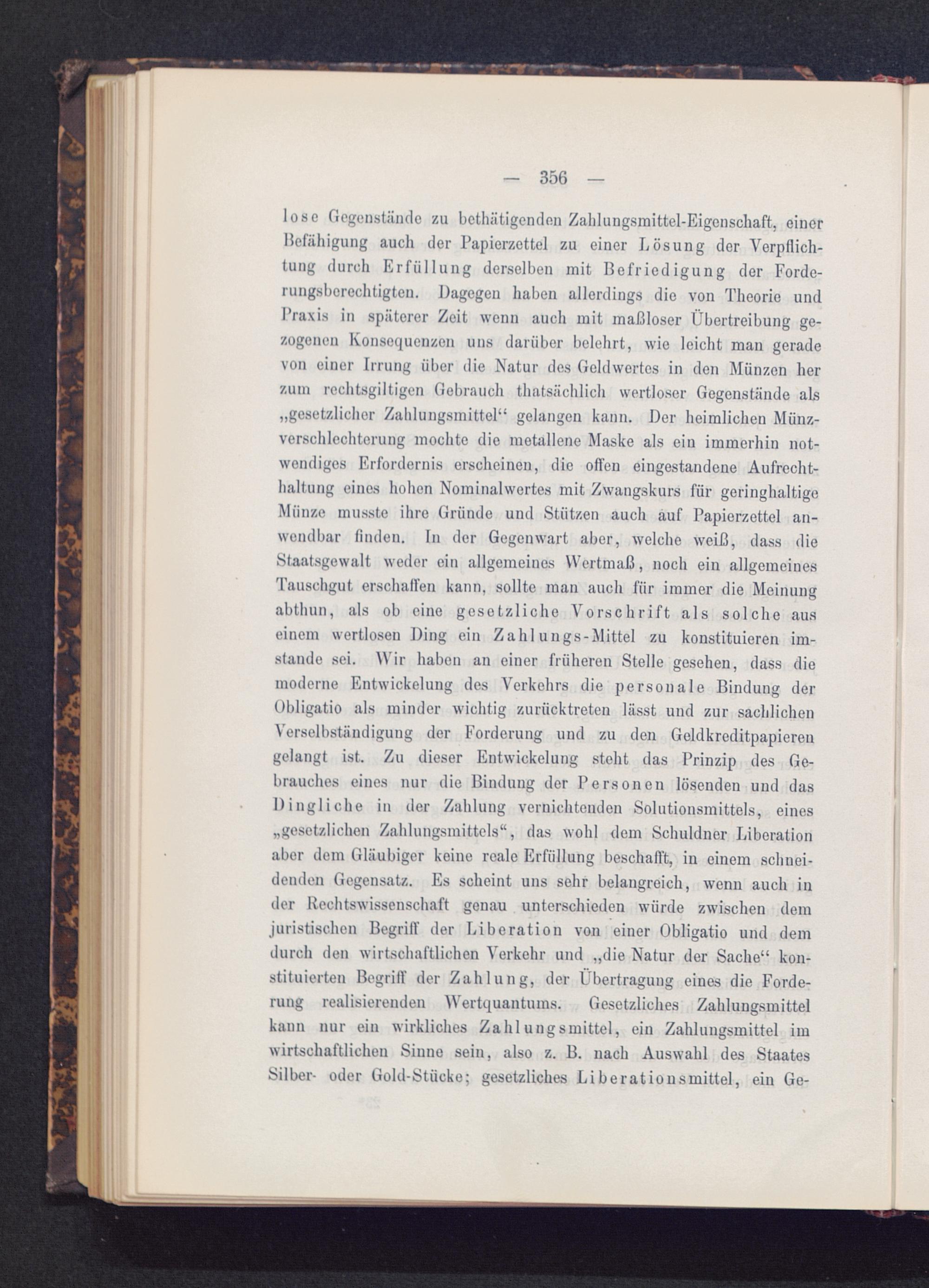 lose Gegenstände zu bcthätigenden Zahlungsmittel-Eigenschaft, einerBefähigung auch der Papierzettel zu einer Lösung der Verpflich-tung durch Erfüllung derselben mit Befriedigung der Forde-rungsbcrechtigteu. Dagegen haben allerdings die von Theorie undPraxis in späterer Zeit wenn auch mit maßloser Übertreibung ge-zogenen Konsequenzen uns darüber belehrt, wie leicht man geradevon einer Irrung über die Natur des Geldwertes in den Münzen herzum rechtsgiltigen Gebrauch thatsächlich wertloser Gegenstände als„gesetzlicher Zahlungsmittel“ gelangen kann. Der heimlichen Münz-verschlechterung mochte die metallene Maske als ein immerhin not-wendiges Erfordernis erscheinen, die offen eingestandene Aufrecht-haltung eines hohen Nominalwertes mit Zwangskurs für geringhaltigeMünze musste ihre Gründe und Stützen auch auf Papierzettel an-wendbar finden. In der Gegenwart aber, welche weiß, dass dieStaatsgewalt weder ein allgemeines Wertmaß, noch ein allgemeinesTauschgut erschaffen kann, sollte man auch für immer die Meinungabthun, als ob eine gesetzliche Vorschrift als solche auseinem wertlosen Ding ein Zahlungs-Mittel zu konstituieren im-stande sei. Wir haben an einer früheren Stelle gesehen, dass diemoderne Entwickelung des Verkehrs die personale Bindung derObligatio als minder wichtig zurücktreten lässt und zur sachlichenVerselbständigung der Forderung und zu den Geldkreditpapiereugelangt ist. Zu dieser Entwickelung steht das Prinzip des Ge-brauches eines nur die Bindung der Personen lösenden und dasDingliche in der Zahlung vernichtenden Solutionsmittels, eines„gesetzlichen Zahlungsmittels“, das wohl dem Schuldner Liberationaber dem Gläubiger keine reale Erfüllung beschafft, in einem schnei-denden Gegensatz. Es scheint uns sehr belangreich, wenn auch inder Rechtswissenschaft genau unterschieden würde zwischen demjuristischen Begriff der Liberation von einer Obligatio und demdurch den wirtschaftlichen Verkehr und „die Natur der Sache“ kon-stituierten Begriff der Zahlung, der Übertragung eines die Forde-rung realisierenden Wertquantums. Gesetzliches Zahlungsmittelkann nur ein wirkliches Zahlungsmittel, ein Zahlungsmittel imwirtschaftlichen Sinne sein, also z. B. nach Auswahl des StaatesSilber- oder Gold-Stücke; gesetzliches Liberationsmittel, ein Ge-