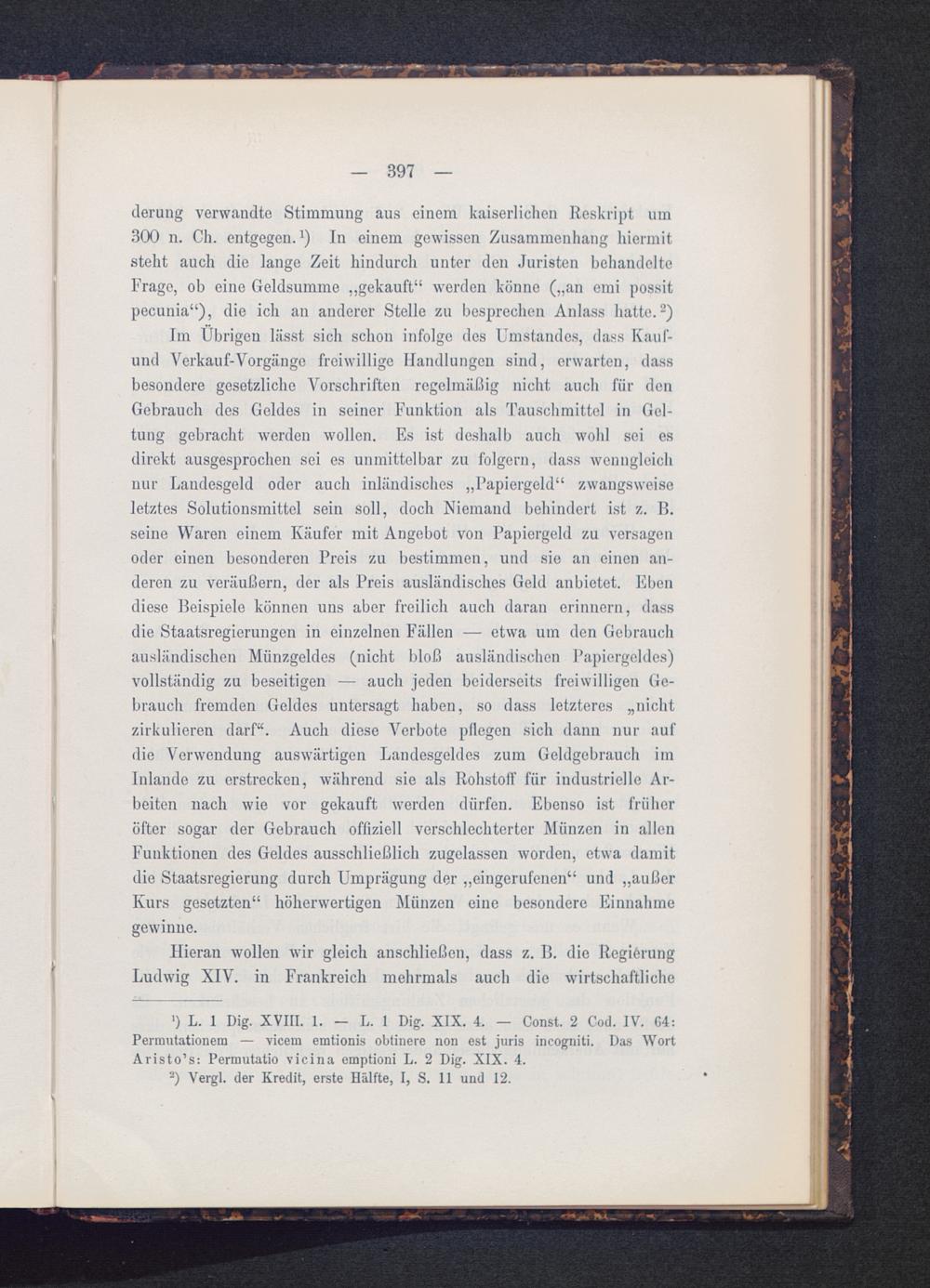 derung verwandte Stimmung aus einem kaiserlichen Reskript um300 n. Ch. entgegen. 1 ) In einem gewissen Zusammenhang hiermitsteht auch die lange Zeit hindurch unter den Juristen behandelteFrage, ob eine Geldsumme „gekauft“ werden könne („an emi possitpecunia“), die ich an anderer Stelle zu besprechen Anlass hatte. 2 )