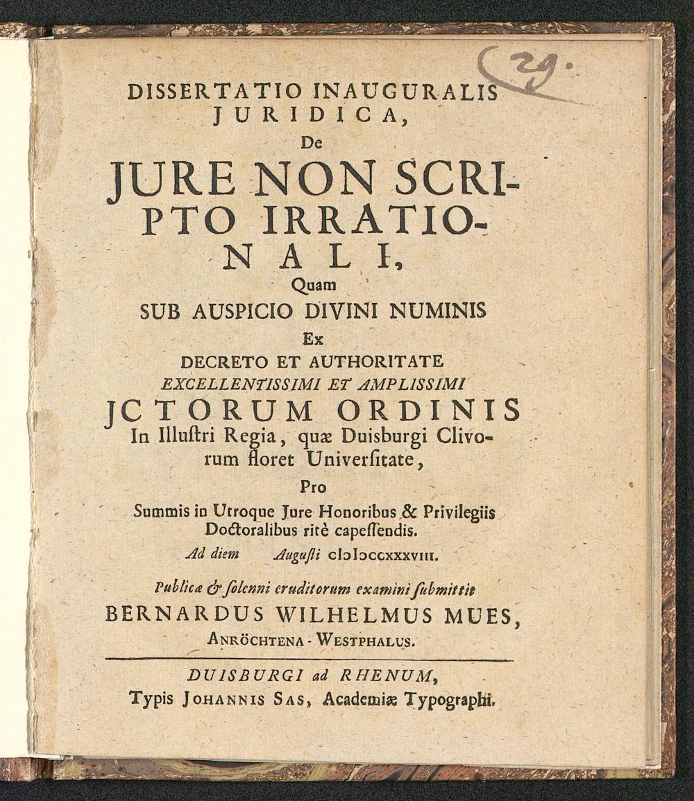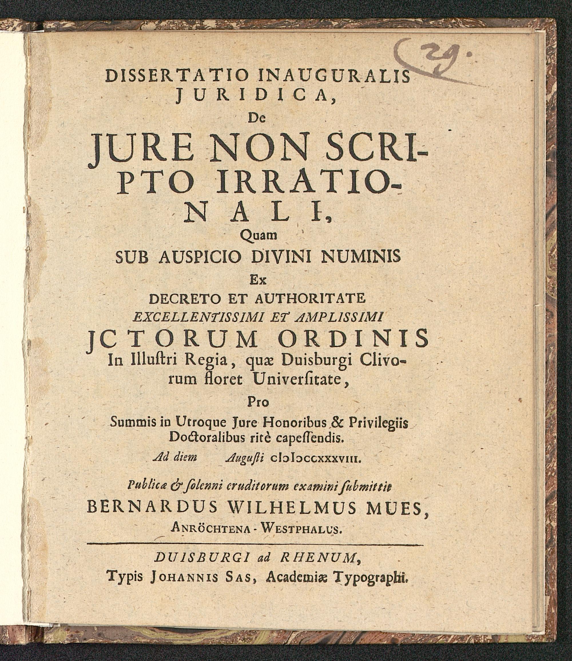 DUISBURGI ad RHENUM,Typis Johannis Sas, Academias Typographi.
