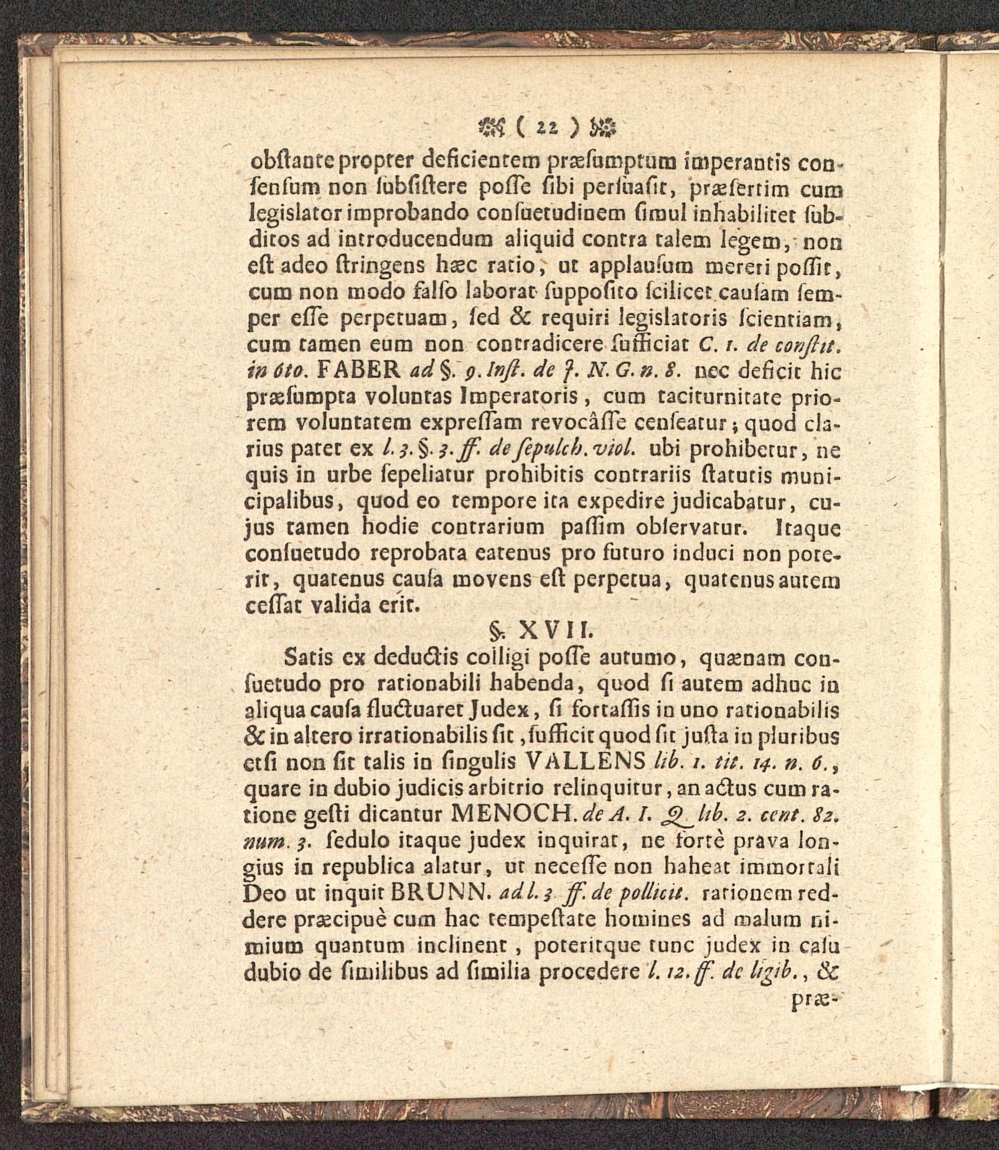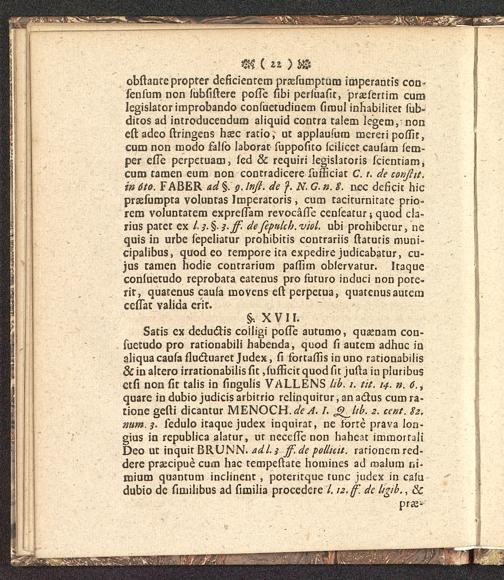 Satis ex deductis coiligi pofle autumo, qusenam con-fuetudo pro rarionabili habenda, quod fi autem adhuc iualiquacaufa flu&uarer Judex, fi fortaflis in uno rationabilis8c in altero irrationabilis fit ,fufficit quod fit jufta iu pluribusetfi non fit talis in fingolis VALLENS lib. i. tit. 14. n. 6.,quare in dubio judicis arbitrio relinquitur,ana£tus cumra-tione gefti dicantur MENOCH.^^. /. Jg^lib. 2. cent. 82.num.3. fedulo itaque judex inquirat, ne forre prava lon-gius in republica alatur, ur necefle non haheat imraorraliDeo ut inquir BRUNN. adl.3-ff.de pollicit. rarionem red-dere prascipue cum hac tempeftate homines ad maJum ni-mium quantum inclinenr , poterirque runc judex in cafudubio de fimihbus ad fimilia procedere /. 12. ff. dc Ifgib, , &