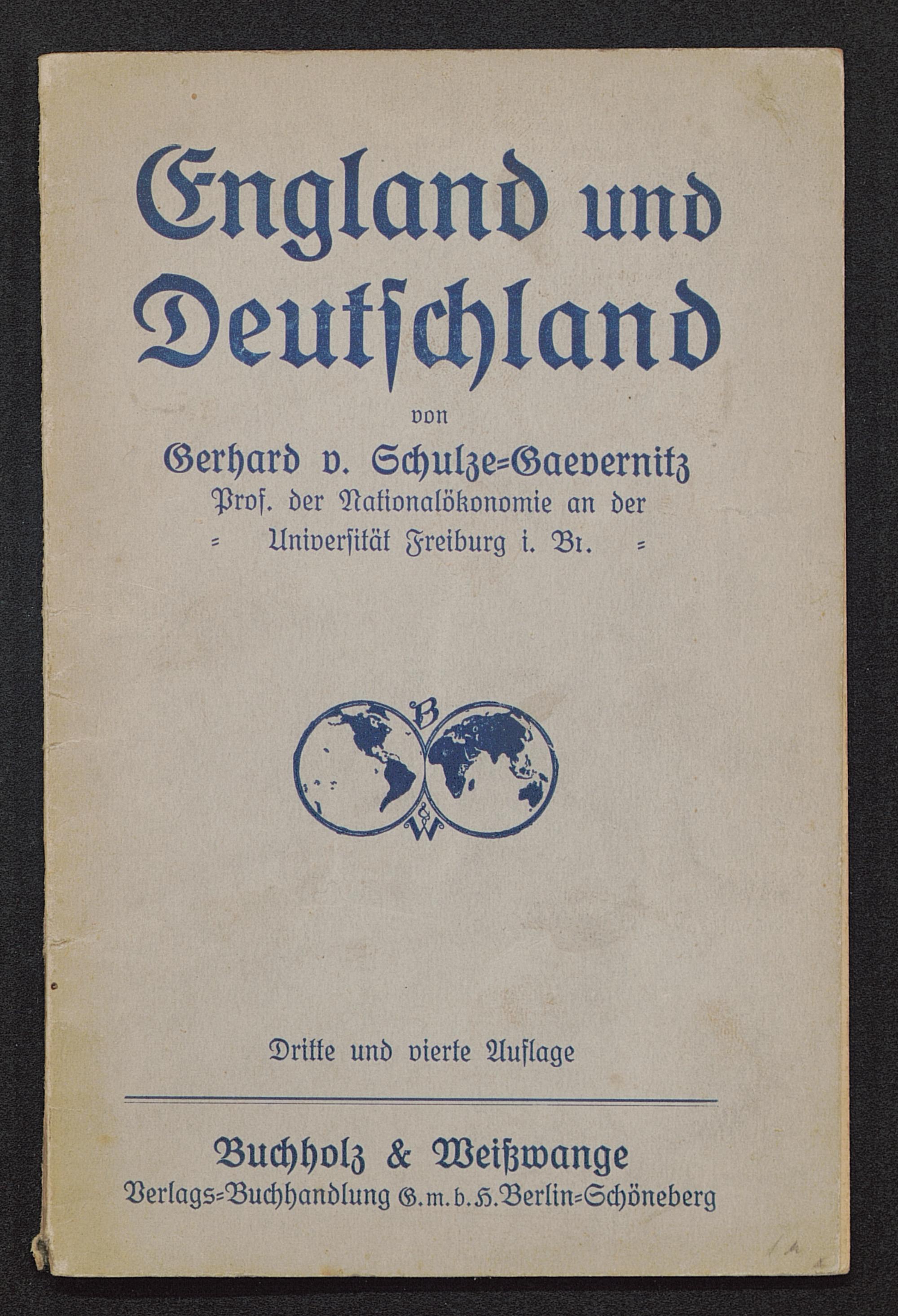 England undDeutschland vonGerhard v. Schulze-GaevernitzPros. der Nationalökonomie an der- Universität Freiburg i. Bl. -Dritte und vierte AuflageBuchholz L WeißwangeVerlags-Buchhandlung G.m.b.K.Berlin-Schöneberg