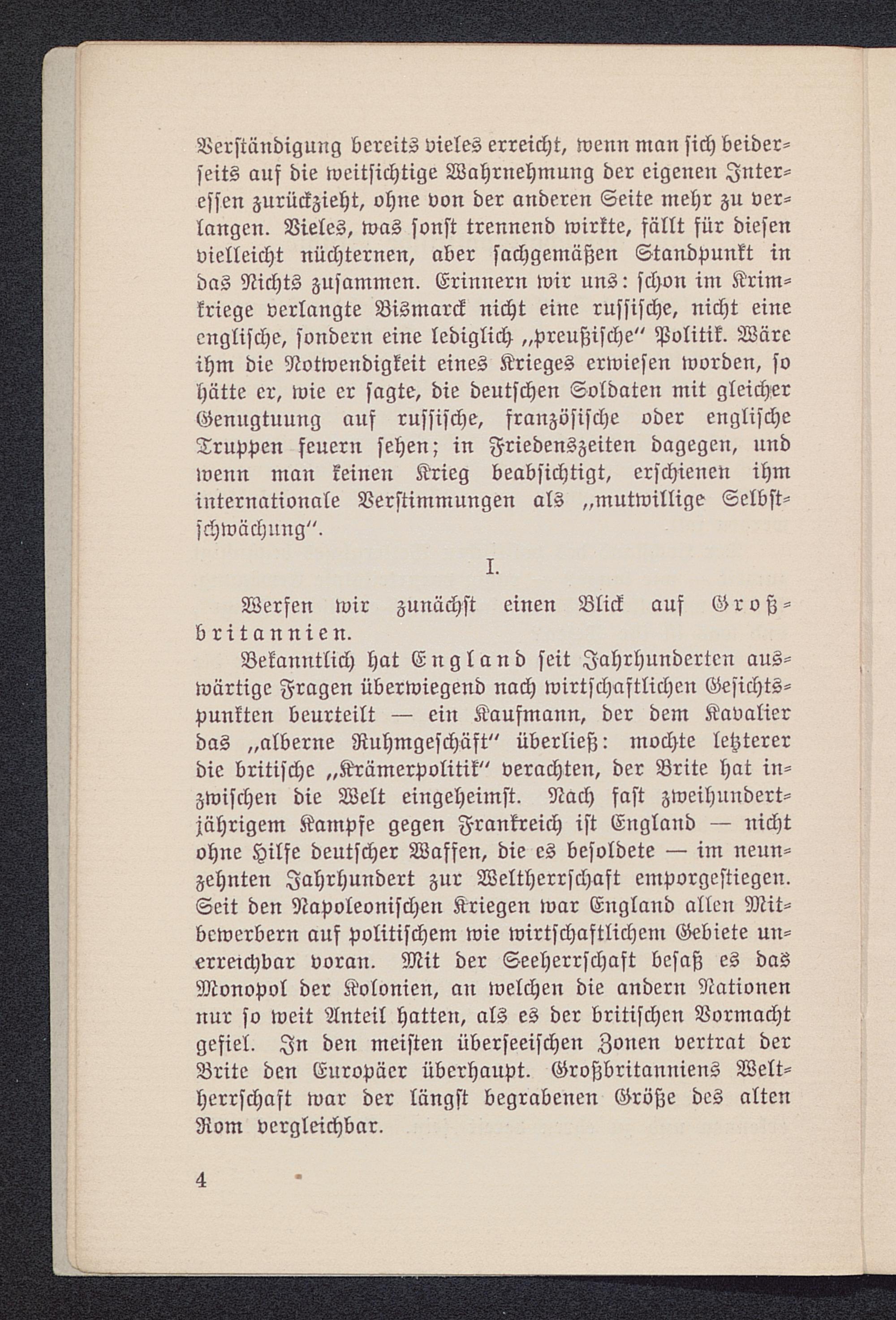 Bekanntlich hat England seit Jahrhunderten aus-wärtige Fragen überwiegend nach wirtschaftlichen Gesichts-punkten beurteilt — ein Kaufmann, der dem Kavalierdas „alberne Ruhmgeschäft" überließ: mochte letztererdie britische „Krämerpolitik" verachten, der Brite hat in-zwischen die Welt eingeheimst. Nach fast zweihundert-jährigem Kampfe gegen Frankreich ist England — nichtohne Hilfe deutscher Waffen, die es besoldete — im neun-zehnten Jahrhundert zur Weltherrschaft emporgestiegen.Seit den Napoleonischen Kriegen war England allen Mit-bewerbern auf politischem wie wirtschaftlichem Gebiete un-erreichbar voran. Mit der Seeherrschaft besaß es dasMonopol der Kolonien, an welchen die andern Nationennur so weit Anteil hatten, als es der britischen Vormachtgefiel. In den meisten überseeischen Zonen vertrat derBrite den Europäer überhaupt. Großbritanniens Welt-herrschaft war der längst begrabenen Größe des altenRom vergleichbar.