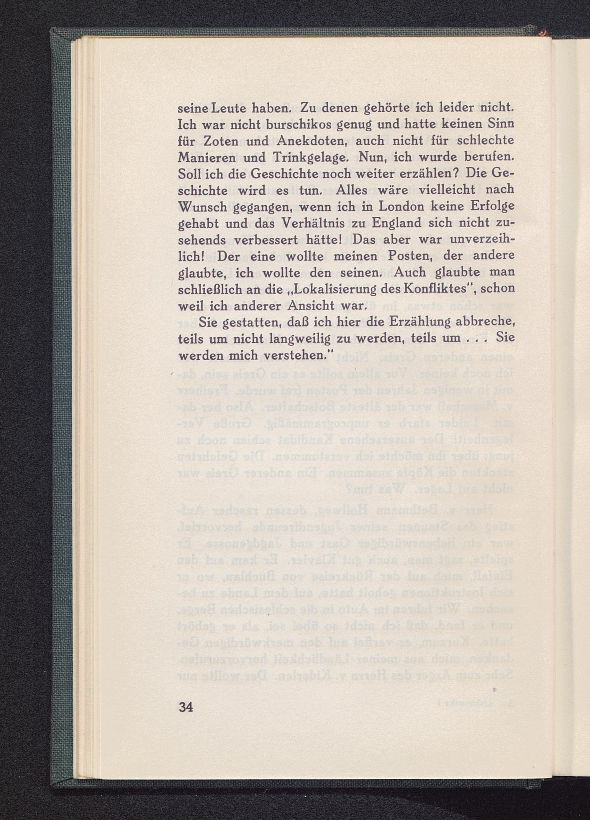 Sie gestatten, daß ich hier die Erzählung abbreche,teils um nicht langweilig zu werden, teils um . . . Siewerden mich verstehen."