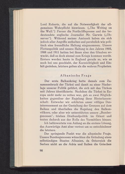 Der springende Punkt war die albanische Frage.Unsere Bundesgenossen wünschten die Gründung einesselbständigen Staates Albanien, da Österreich dieSerben nicht an die Adria und Italien die Griechen