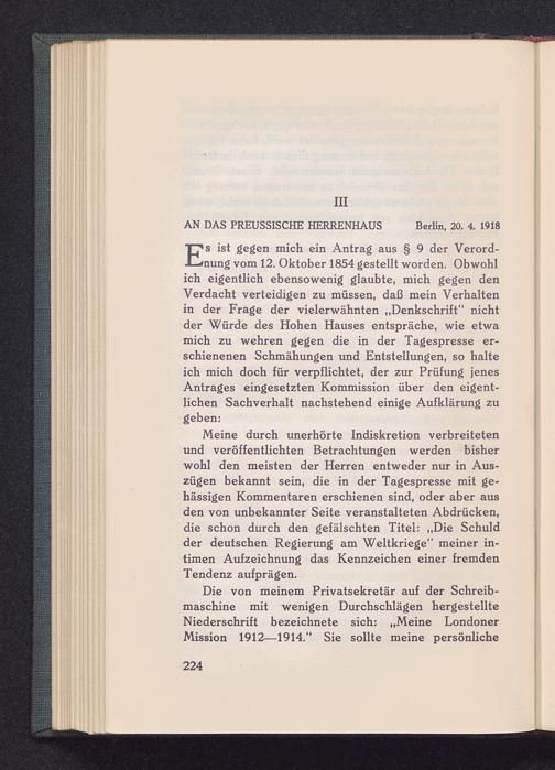 AN DAS PREUSSISCHE HERRENHAUS Berlin, 20. 4. 1918