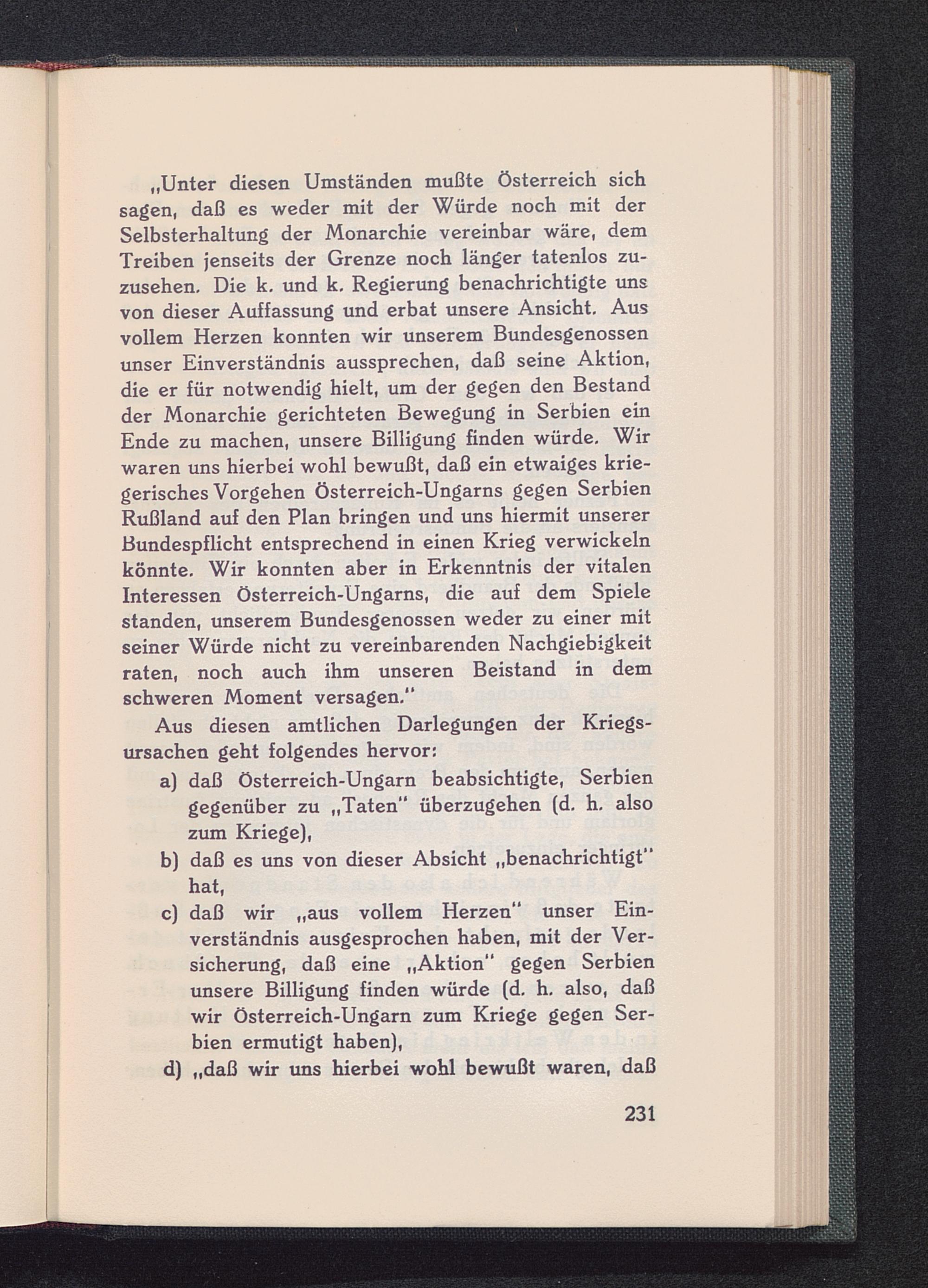 a) daß Österreich-Ungarn beabsichtigte, Serbien gegenüber zu „Taten“ überzugehen (d. h. alsozum Kriege),