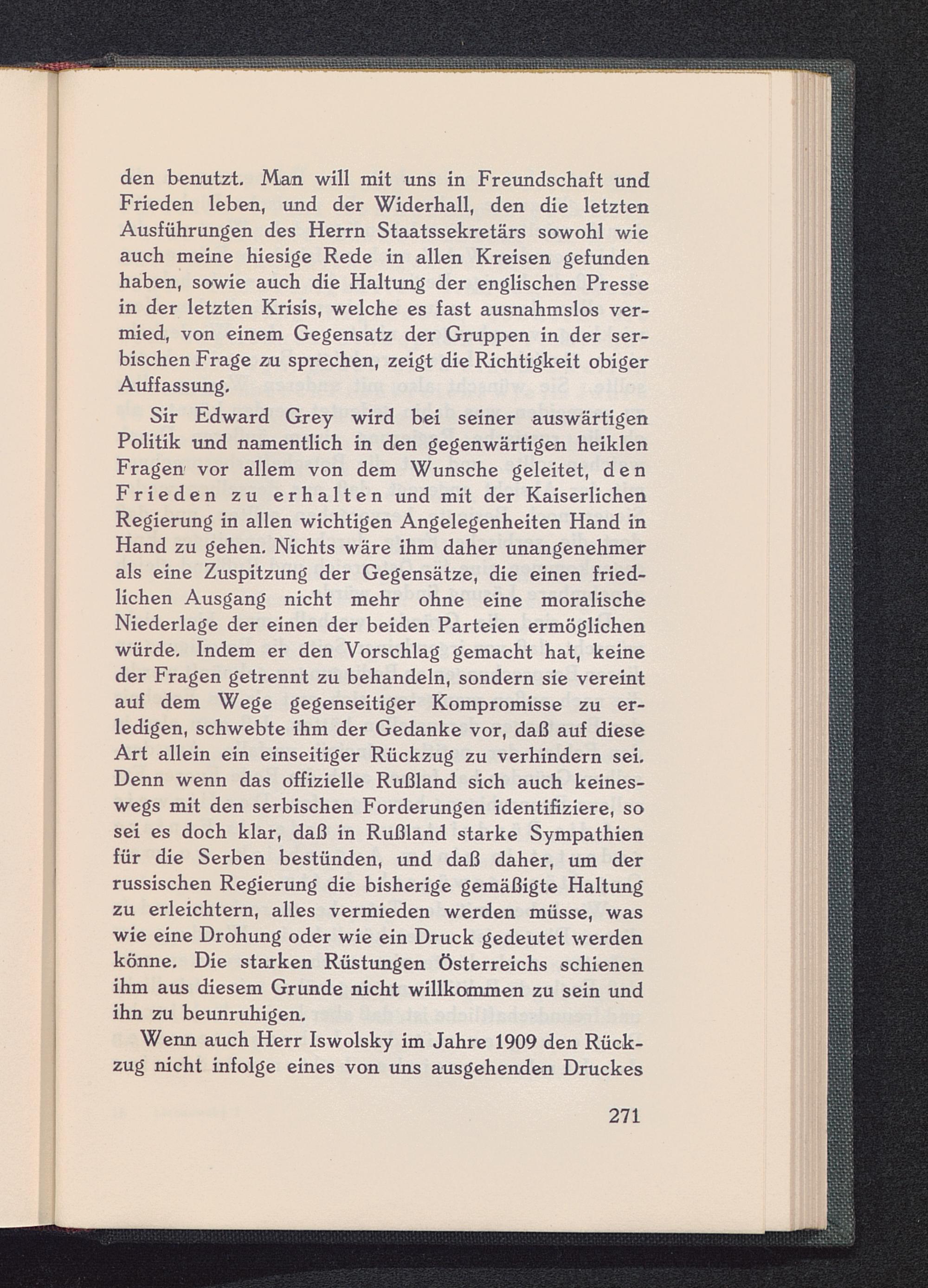 Wenn auch Herr Iswolsky im Jahre 1909 den Rück-zug nicht infolge eines von uns ausgehenden Druckes