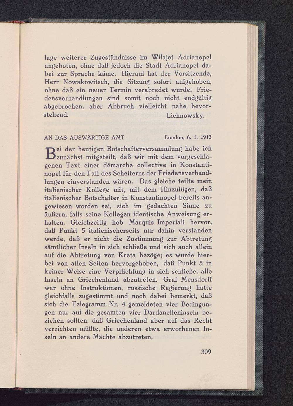 AN DAS AUSWÄRTIGE AMT London , 6. 1. 1913