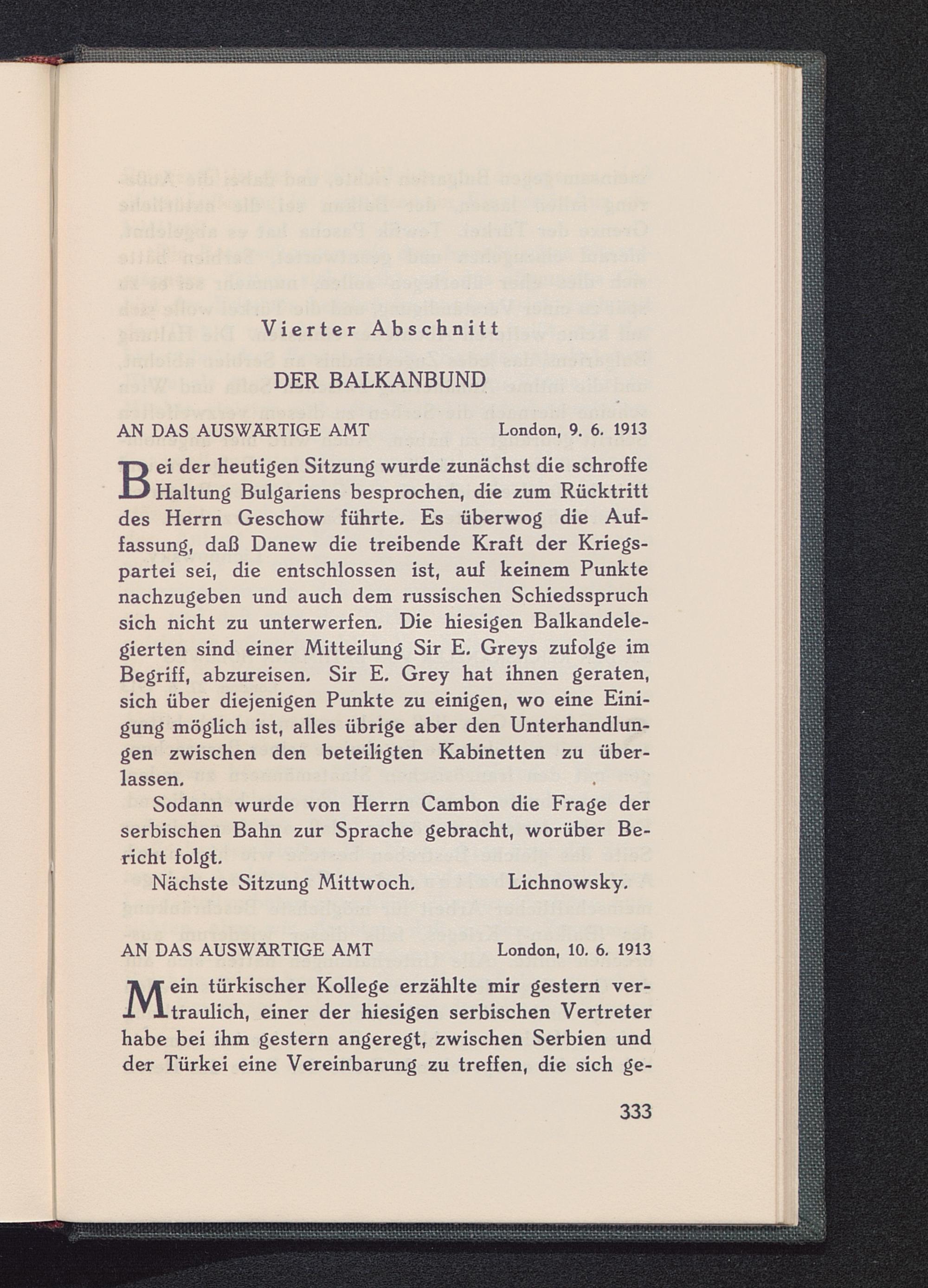 AN DAS AUSWÄRTIGE AMT London , 9. 6. 1913