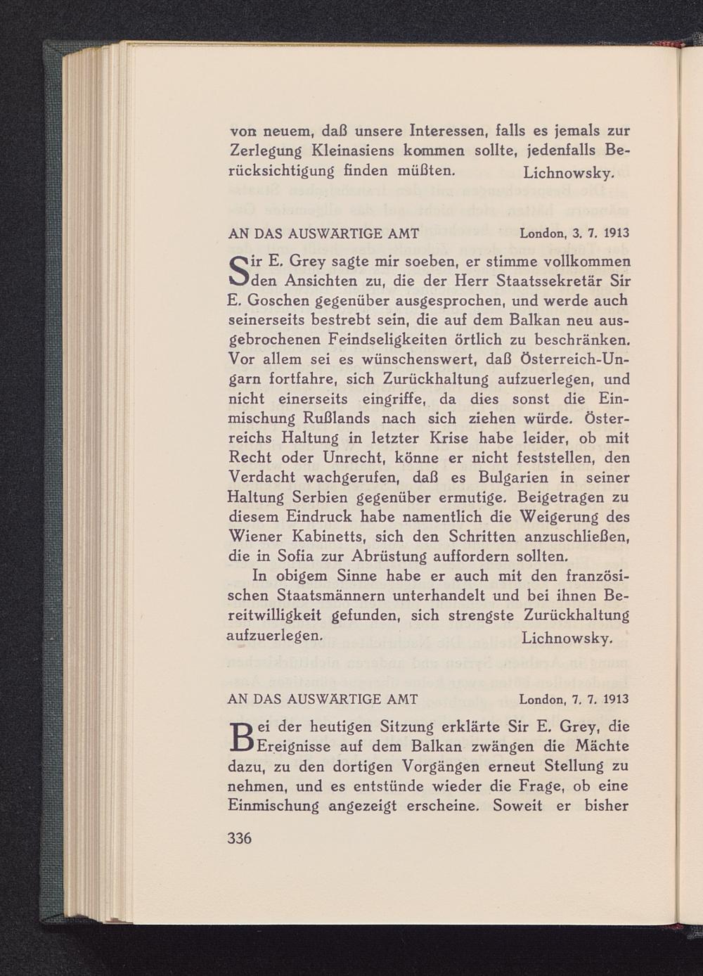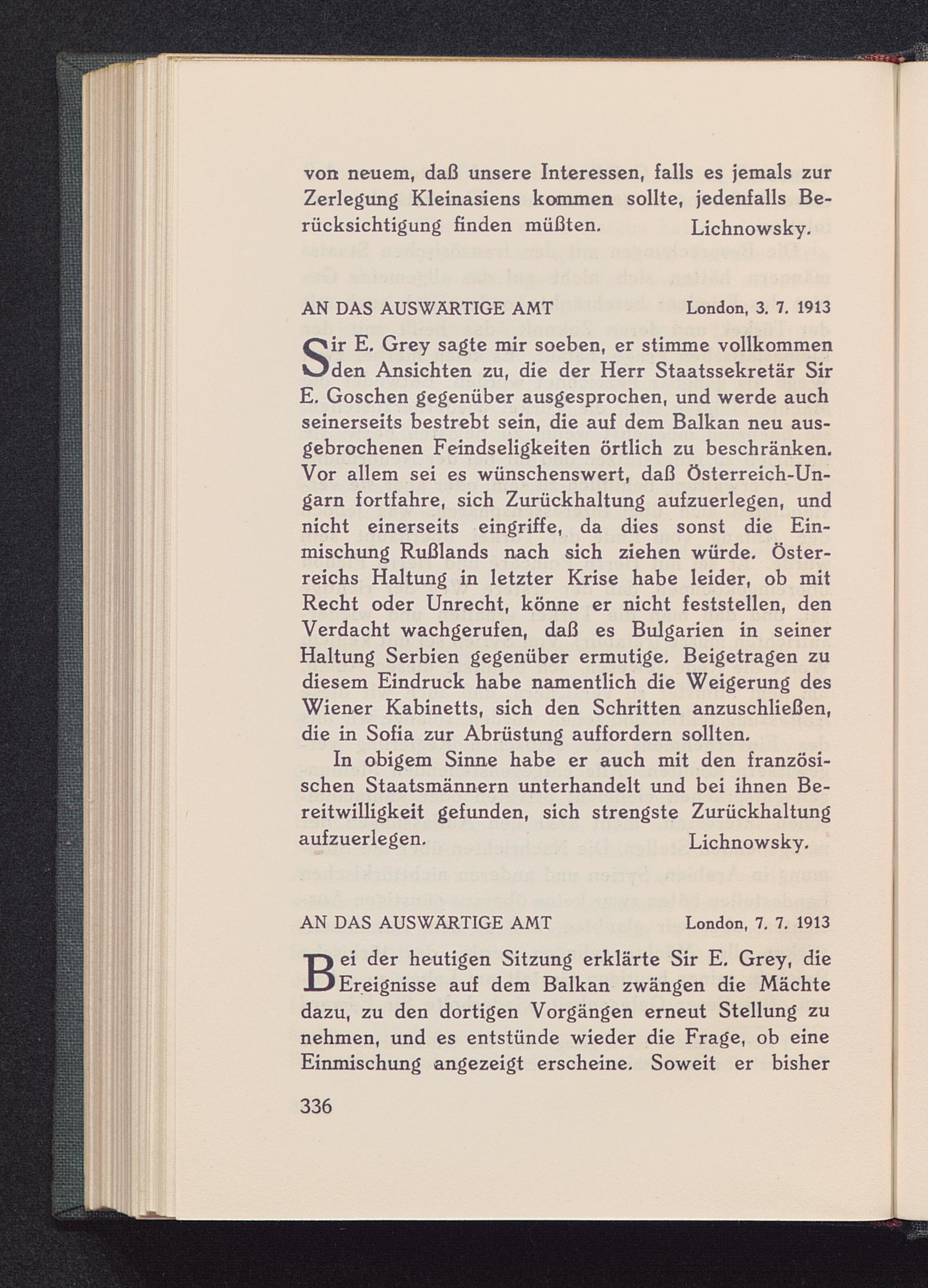 AN DAS AUSWÄRTIGE AMT London , 3. 7. 1913