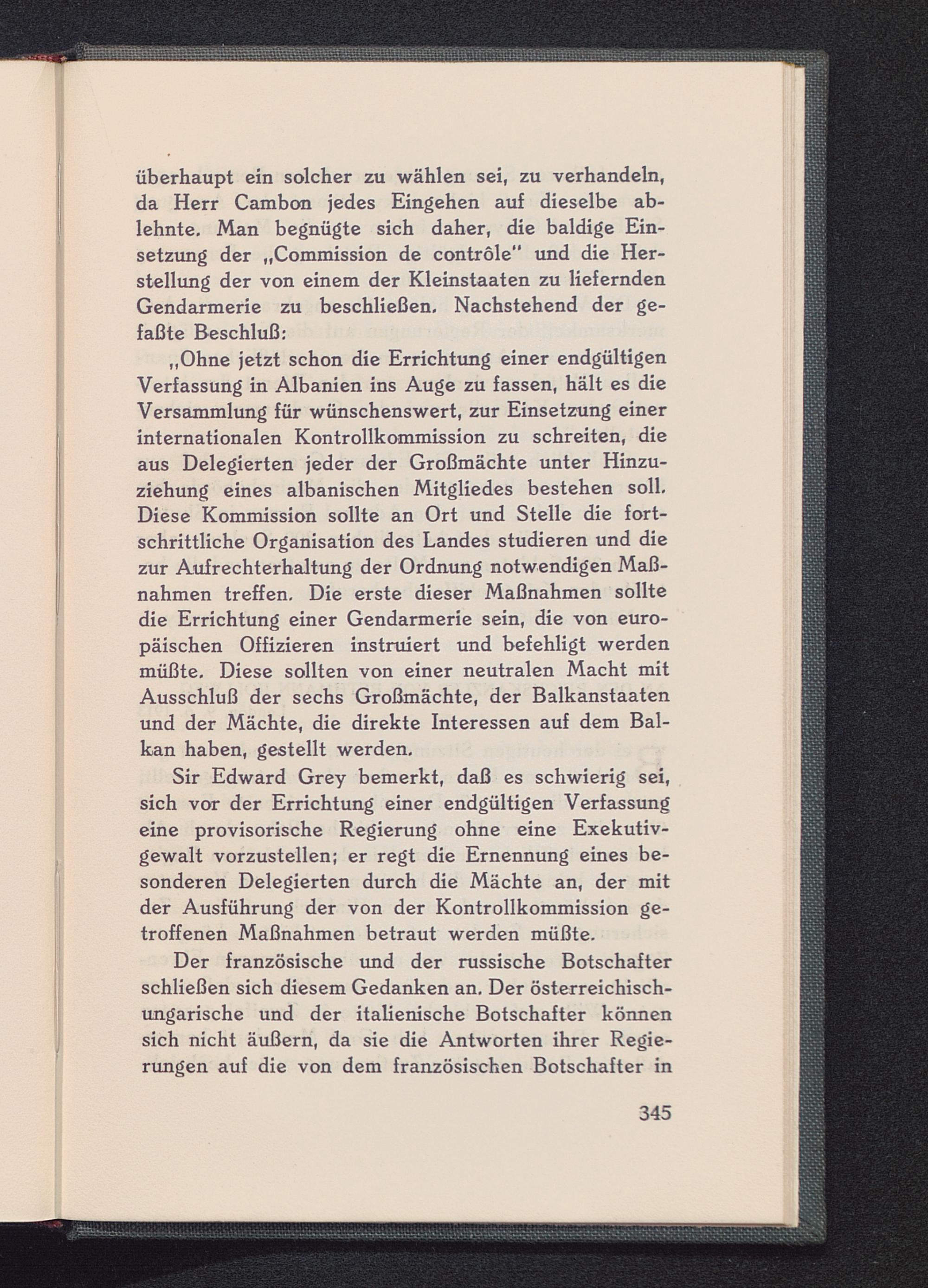 überhaupt ein solcher zu wählen sei, zu verhandeln,da Herr Cambon jedes Eingehen auf dieselbe ab-lehnte. Man begnügte sich daher, die baldige Ein-setzung der „Commission de contröle“ und die Her-stellung der von einem der Kleinstaaten zu lieferndenGendarmerie zu beschließen. Nachstehend der ge-faßte Beschluß: