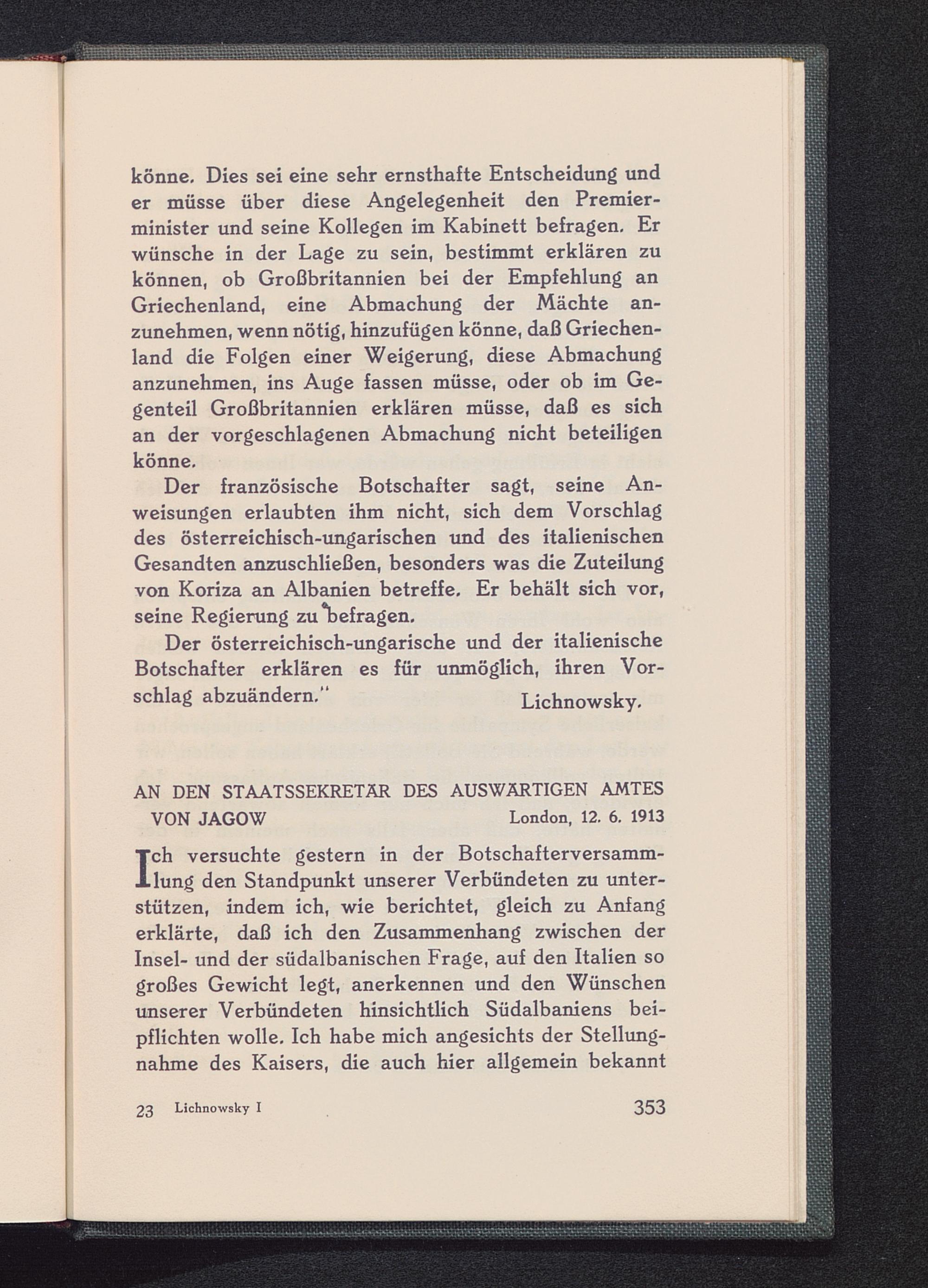 AN DEN STAATSSEKRETÄR DES AUSWÄRTIGEN AMTES VON JAGOW London, 12. 6. 1913