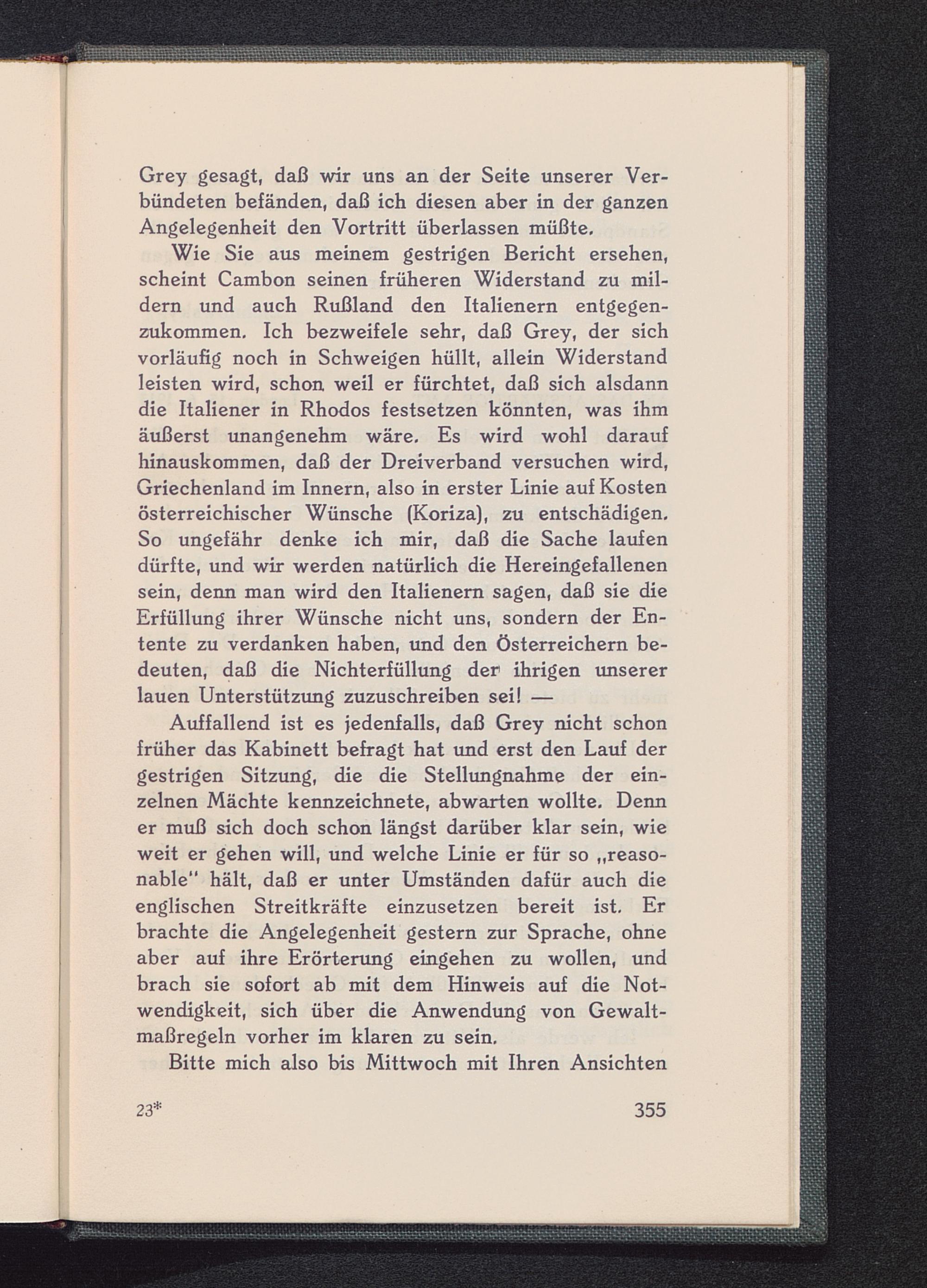 Grey gesagt, daß wir uns an der Seite unserer Ver-bündeten befänden, daß ich diesen aber in der ganzenAngelegenheit den Vortritt überlassen müßte.