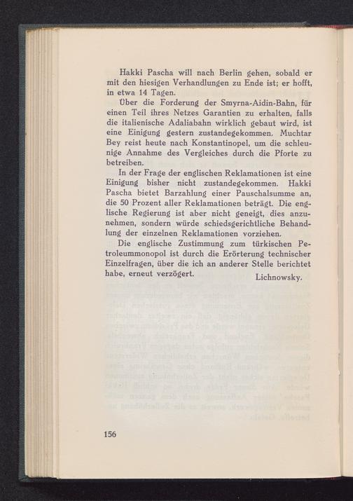 Die englische Zustimmung zum türkischen Pe-troleummonopol ist durch die Erörterung technischerEinzelfragen, über die ich an anderer Stelle berichtethabe, erneut verzögert. Lichnowsky.