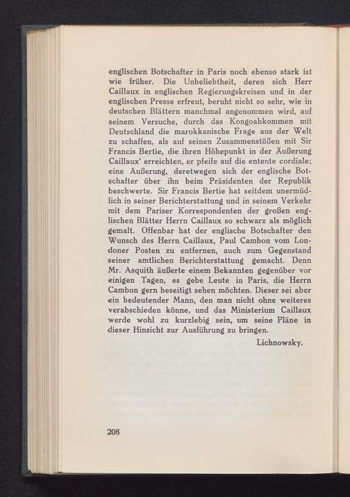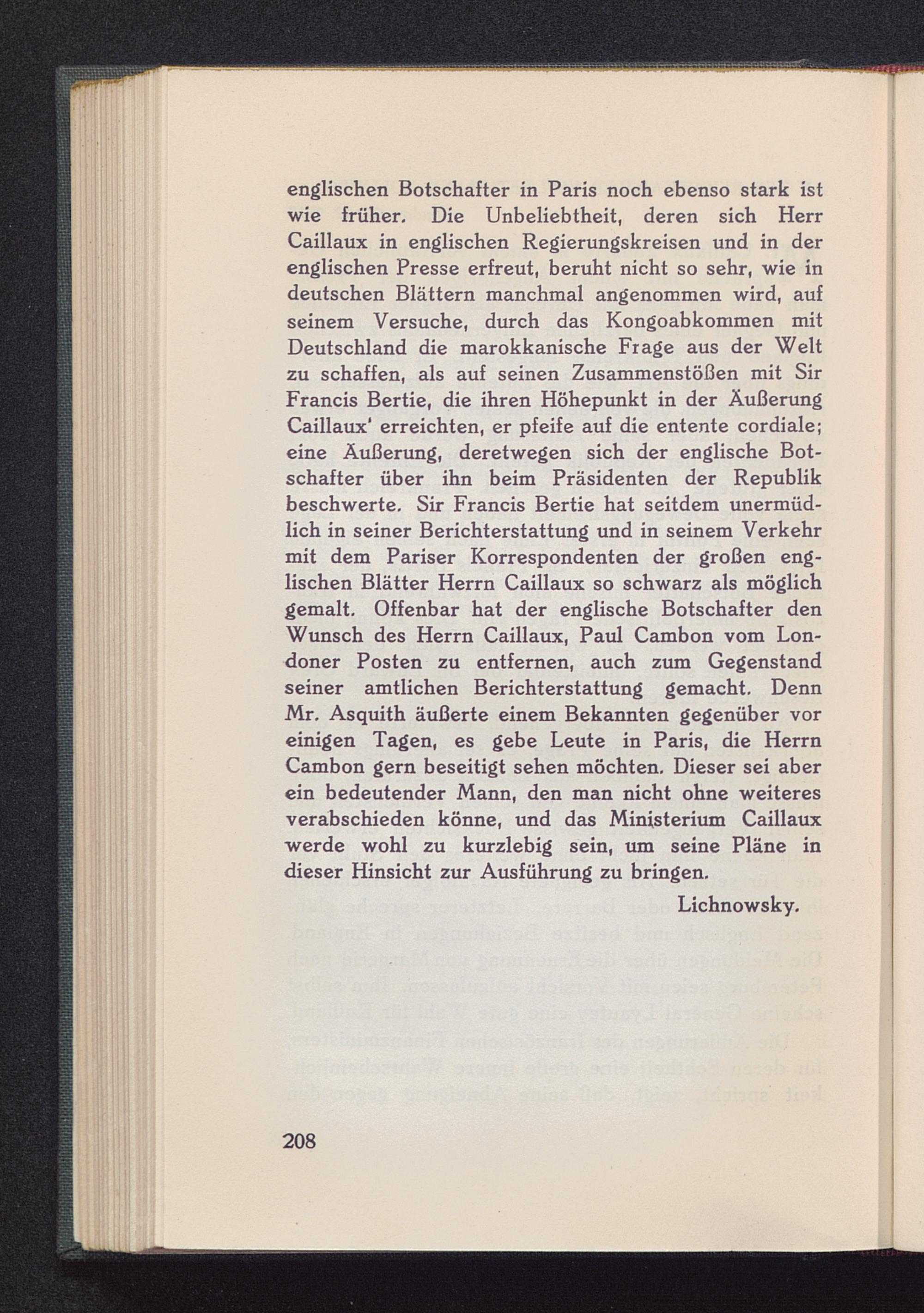 englischen Botschafter in Paris noch ebenso stark istwie früher. Die Unbeliebtheit, deren sich HerrCaillaux in englischen Regierungskreisen und in derenglischen Presse erfreut, beruht nicht so sehr, wie indeutschen Blättern manchmal angenommen wird, aufseinem Versuche, durch das Kongoabkommen mitDeutschland die marokkanische Frage aus der Weltzu schaffen, als auf seinen Zusammenstößen mit SirFrancis Bertie , die ihren Höhepunkt in der ÄußerungCaillaux ' erreichten, er pfeife auf die entente cordiale;eine Äußerung, deretwegen sich der englische Bot-schafter über ihn beim Präsidenten der Republikbeschwerte. Sir Francis Bertie hat seitdem unermüd-lich in seiner Berichterstattung und in seinem Verkehrmit dem Pariser Korrespondenten der großen eng-lischen Blätter Herrn Caillaux so schwarz als möglichgemalt. Offenbar hat der englische Botschafter denWunsch des Herrn Caillaux, Paul Cambon vom Lon-doner Posten zu entfernen, auch zum Gegenstandseiner amtlichen Berichterstattung gemacht. DennMr. Asquith äußerte einem Bekannten gegenüber voreinigen Tagen, es gebe Leute in Paris , die HerrnCambon gern beseitigt sehen möchten. Dieser sei aberein bedeutender Mann, den man nicht ohne weiteresverabschieden könne, und das Ministerium Caillaux werde wohl zu kurzlebig sein, um seine Pläne indieser Hinsicht zur Ausführung zu bringen.