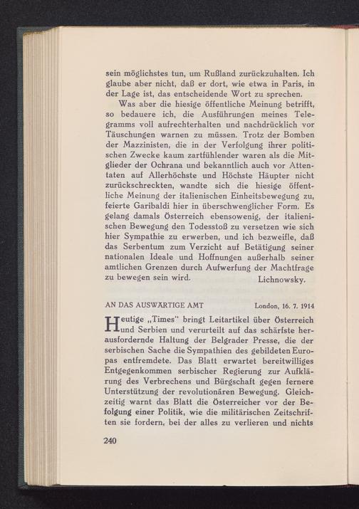 AN DAS AUSWÄRTIGE AMT London , 16. 7. 1914