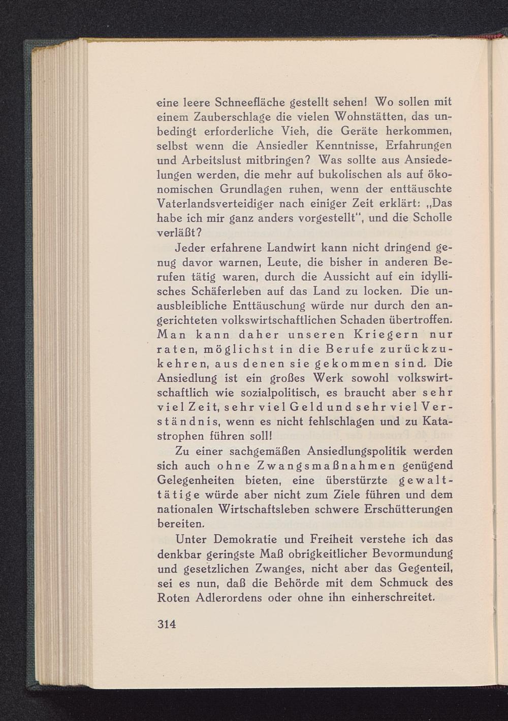 eine leere Schneefläche gestellt sehen! Wo sollen miteinem Zauberschlage die vielen Wohnstätten, das un-bedingt erforderliche Vieh, die Geräte herkommen,selbst wenn die Ansiedler Kenntnisse, Erfahrungenund Arbeitslust mitbringen? Was sollte aus Ansiede-lungen werden, die mehr auf bukolischen als auf öko-nomischen Grundlagen ruhen, wenn der enttäuschteVaterlandsverteidiger nach einiger Zeit erklärt: „Dashabe ich mir ganz anders vorgestellt“, und die Scholleverläßt?