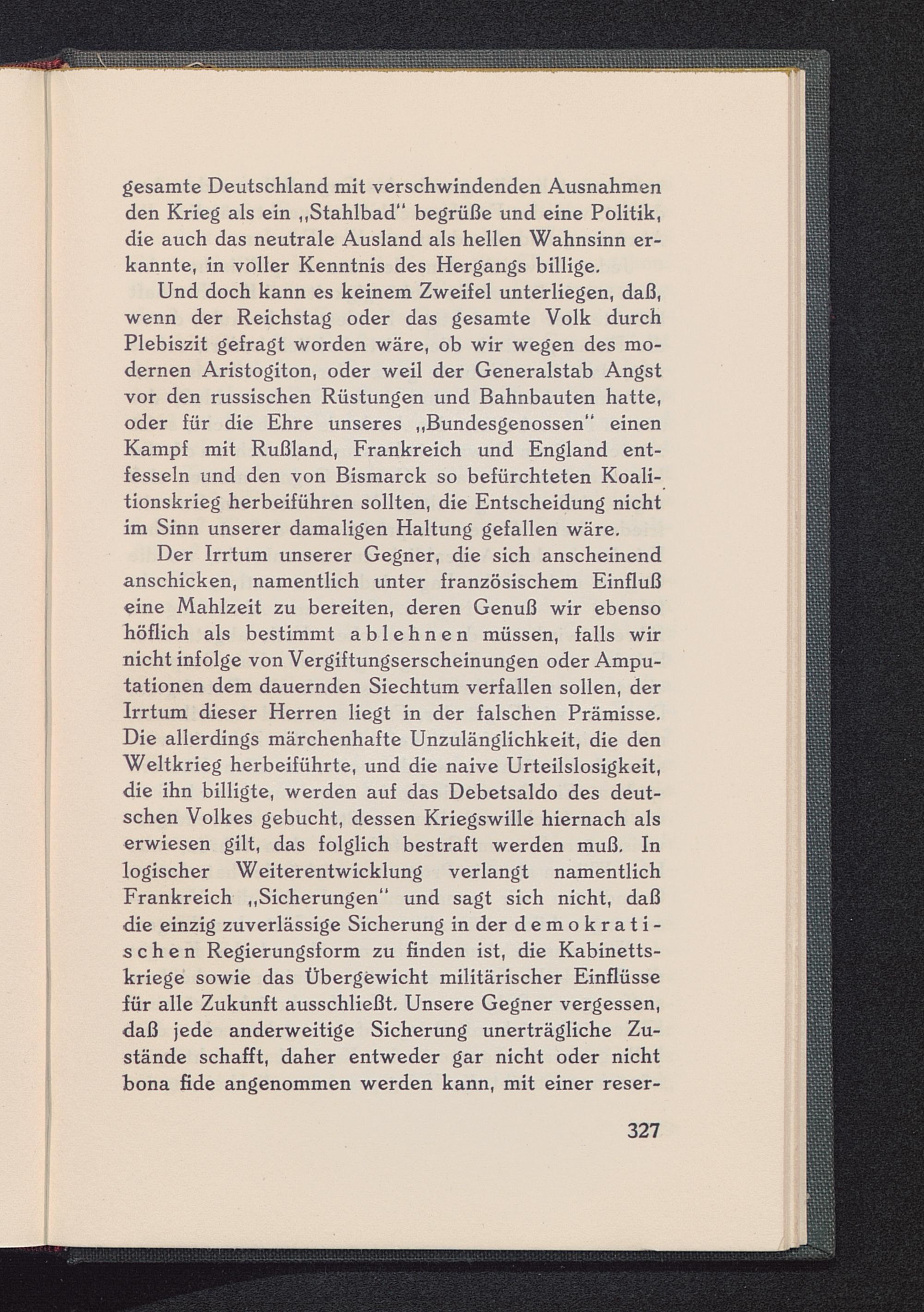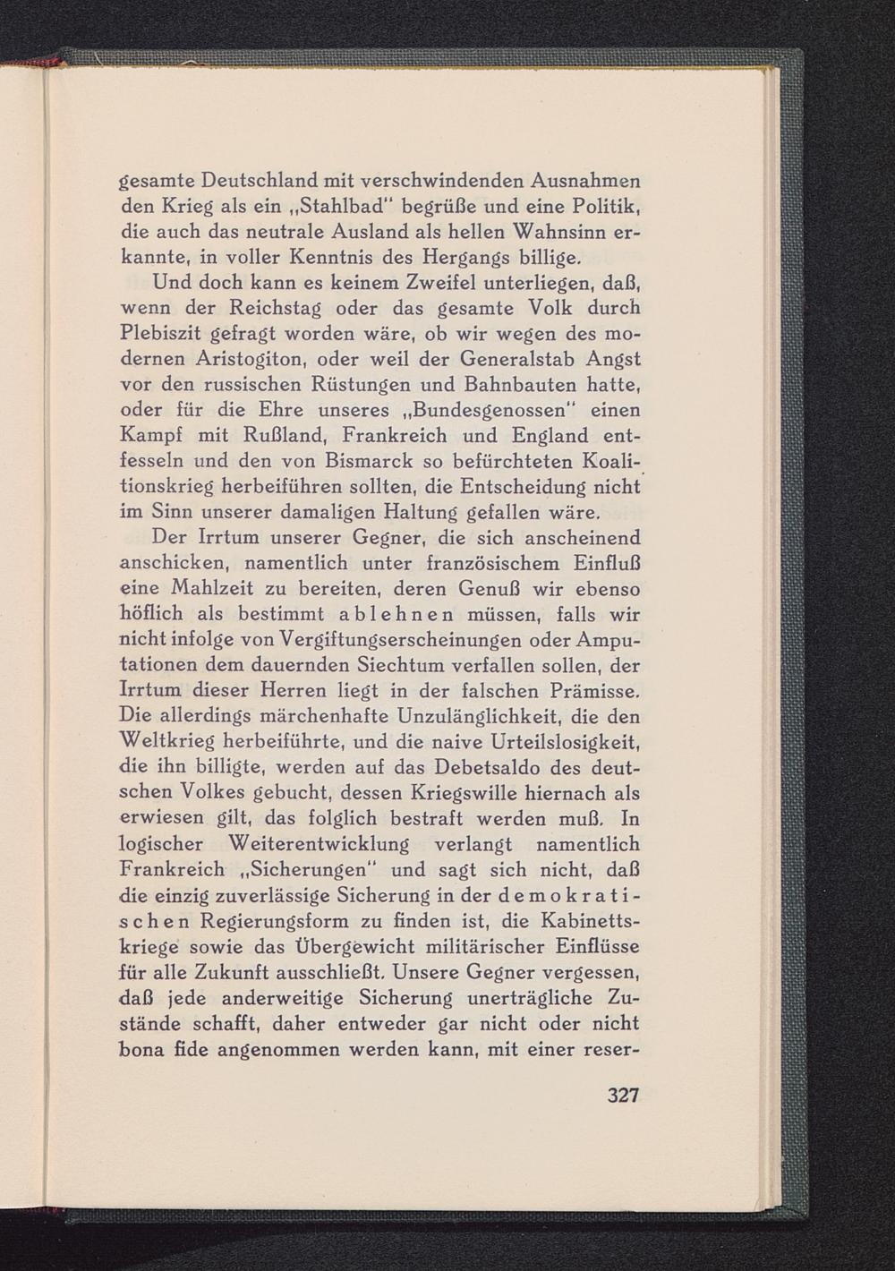 gesamte Deutschland mit verschwindenden Ausnahmenden Krieg als ein „Stahlbad" begrüße und eine Politik,die auch das neutrale Ausland als hellen Wahnsinn er-kannte, in voller Kenntnis des Hergangs billige.