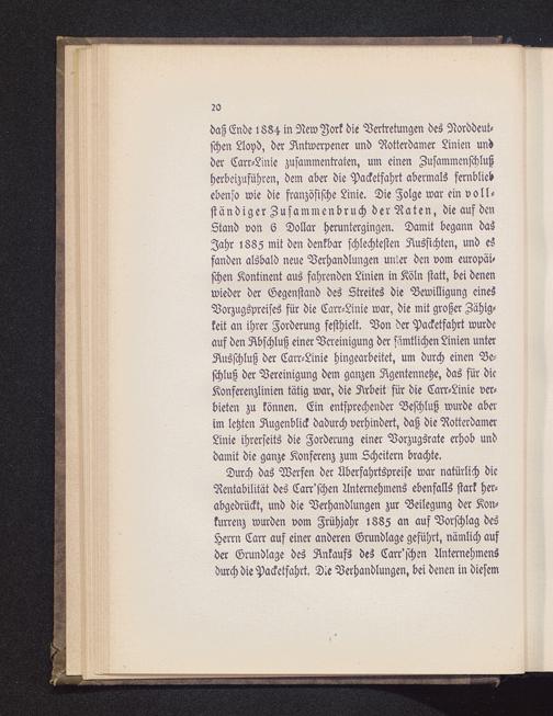 Durch das Werfen der Uberfahrtspreise war natürlich dieRentabilität des Carr'schen Unternehmens ebenfalls stark her-abgedrückt, und die Verhandlungen zur Beilegung der Kon-kurrenz wurden vom Frühjahr 188Z an auf Vorschlag desHerrn Carr auf einer anderen Grundlage geführt, nämlich aufder Grundlage des Ankaufs des Carr'schen Unternehmensdurch die Packetfahrt. Die Verhandlungen, bei denen in diesem