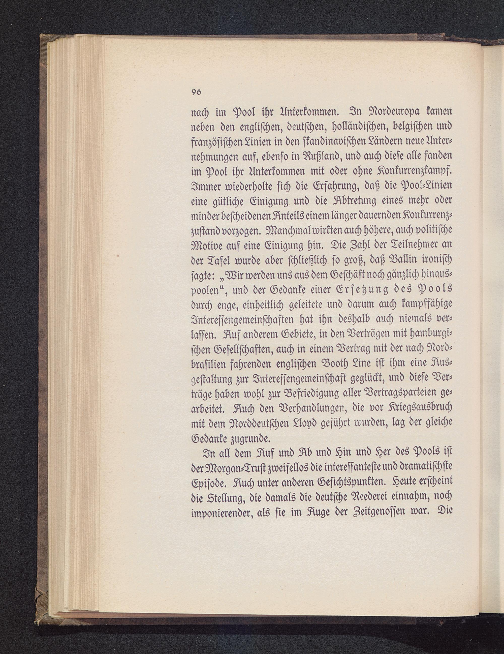 In all dem Auf und Ab und Hin und Her des Pools istder Morgan-Trust zweifellos die interessanteste und dramatischsteEpisode. Auch unter anderen Gesichtspunkten. Heute erscheintdie Stellung, die damals die deutsche Reederei einnahm, nochimponierender, als sie im Auge der Zeitgenossen war. Die