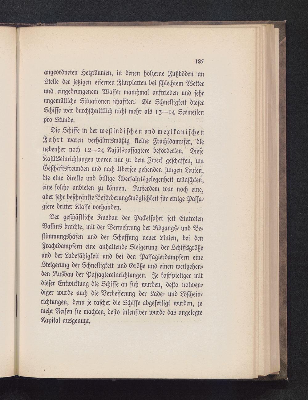 angeordneten Heizräumen, in denen hölzerne Fußböden anStelle der jetzigen eisernen Flurplatten bei schlechtem Wettermd eingedrungenem Wasser manchmal auftrieben und sehrungemütliche Situationen schafften. Die Schnelligkeit dieserSchiffe war durchschnittlich nicht mehr als iz—14 Seemeilenpro Stunde.