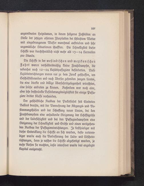 Die Schiffe in der westindischen und mexikanischenFahrt waren verhältnismäßig kleine Frachtdampfer, dienebenher noch 12—24 Kajütspassagiere beförderten. DieseKajütseinrichtungen waren nur zu dem Zweck geschaffen, umGeschäftsfreunden und nach Übersee gehenden jungen Leuten,die eine direkte und billige Überfahrtsgelegenheit wünschten,eine solche anbieten zu können. Außerdem war noch eine,aber sehr beschränkte Beförderungsmöglichkeit für einige Passa-giere dritter Klasse vorhanden.