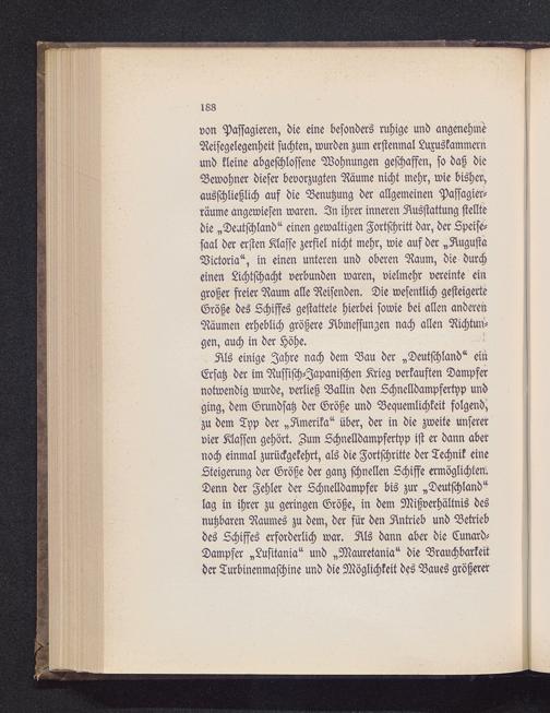 Als einige Zahre nach dem Bau der „Deutschland " einErsatz der im Russisch-Japanischen Krieg verkauften Dampfernotwendig wurde, verließ Ballin den Lchnelldampfertyp undging, dem Grundsatz der Größe und Bequemlichkeit folgen^zu dem Typ der „Amerika " über, der in die zweite unserervier Klassen gehört. Zum Lchnelldampfertyp ist er dann abernoch einmal zurückgekehrt, als die Fortschritte der Technik eineSteigerung der Größe der ganz schnellen Schiffe ermöglichtemDenn der Fehler der Schnelldampfer bis zur „Deutschland "lag in ihrer zu geringen Größe, in dem Mißverhältnis desnutzbaren Raumes zu dem, der für den Antrieb und Betriebdes Schiffes erforderlich war. Als dann aber die Cunard-Dampfer „Lusitania " und „Mauretania" die Brauchbarkeitder Turbinenmaschine und die Möglichkeit des Baues größerer