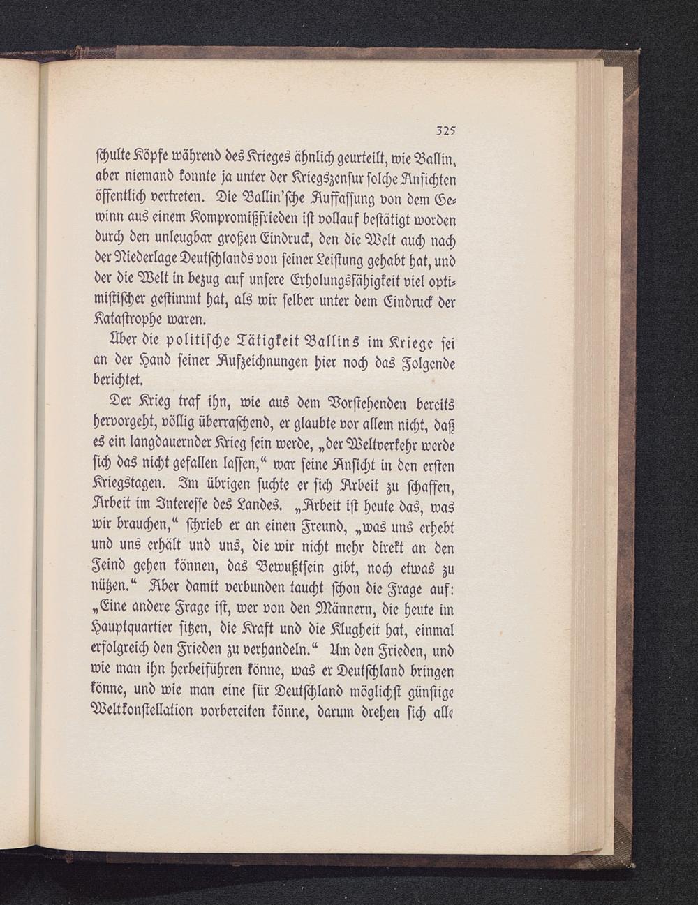 Aber die politische Tätigkeit Ballins im Kriege seian der Hand seiner Aufzeichnungen hier noch das Folgendeberichtet.
