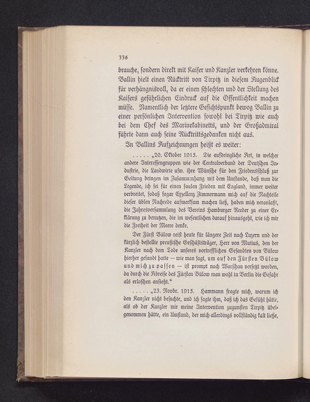 .„2Z. Novbr. 19l5. Hammann fragte mich, warum ich