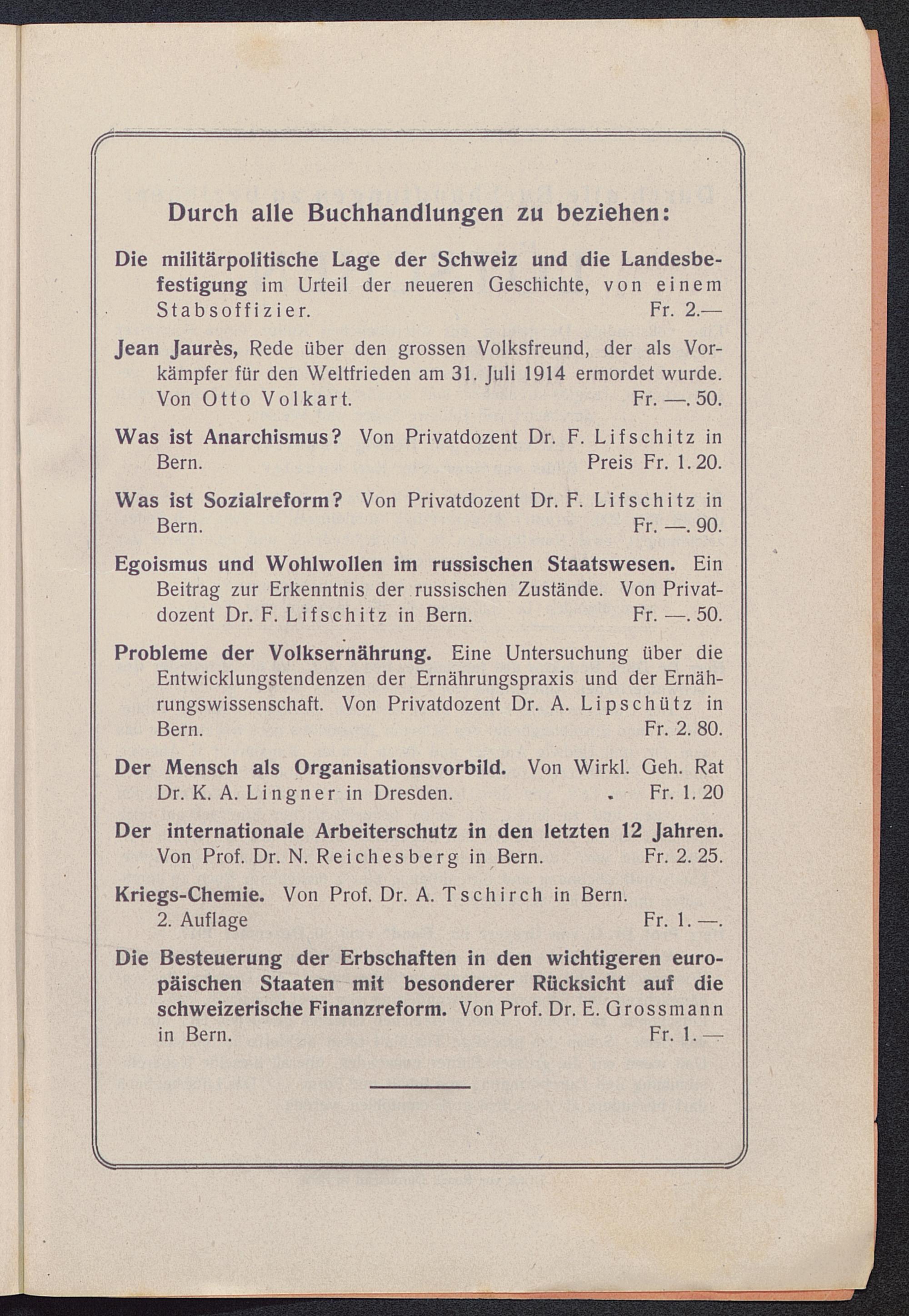 Von Prof. Dr. N. Reichesberg in Bern . Fr. 2. 25.