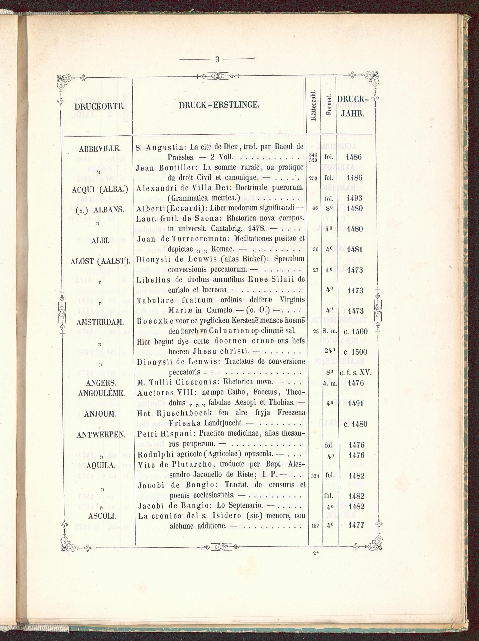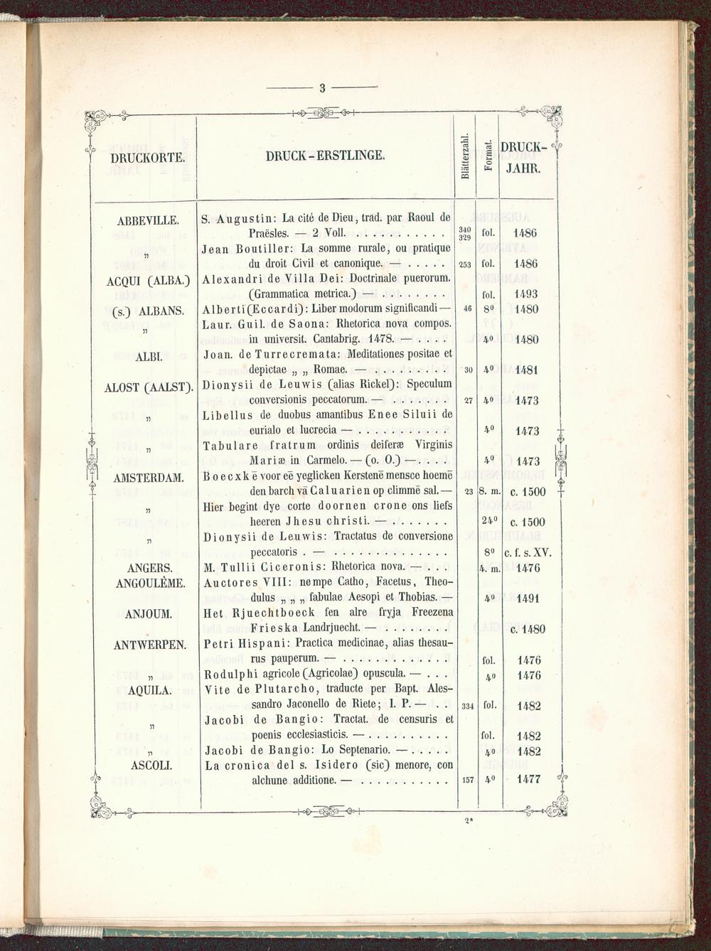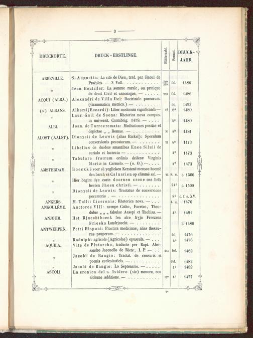 ACQUI( ALBA.) Alexandri de Villa Dei: Doctrinale puerorum.( Grammatica metrica.)—...Alberti( Eccardi): Liber modorum significandiLaur. Guil. de Saona: Rhetorica nova compos.andinolistin universit. Cantabrig. 1478....Joan. de Turrecremata: Meditationes positae etdepictae," Romae.