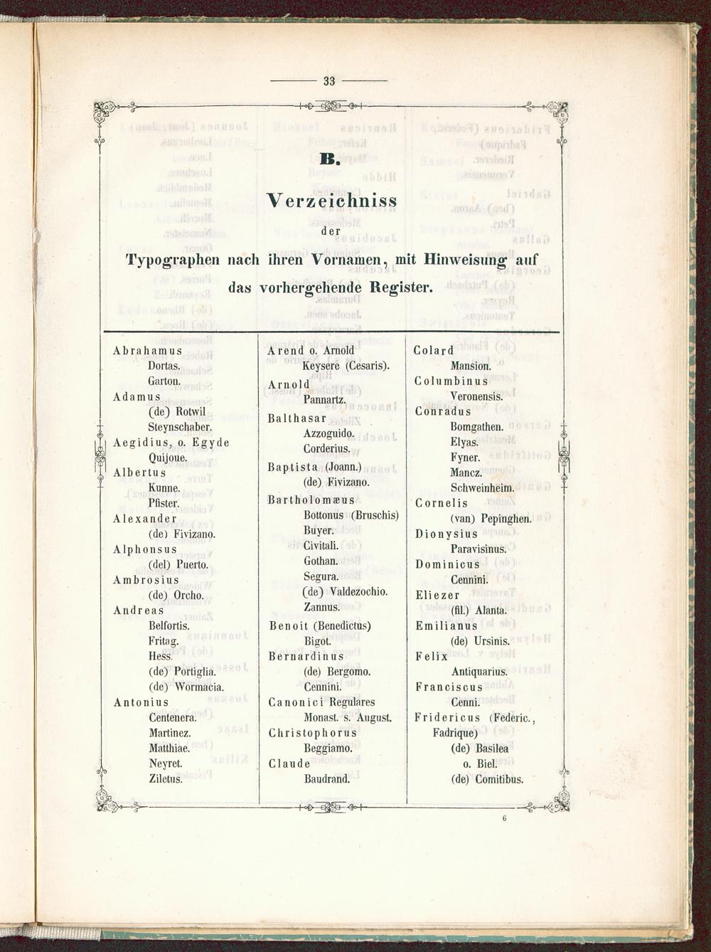 Typographen nach ihren Vornamen, mit Hinweisnng anfdas vorhergehende Register.