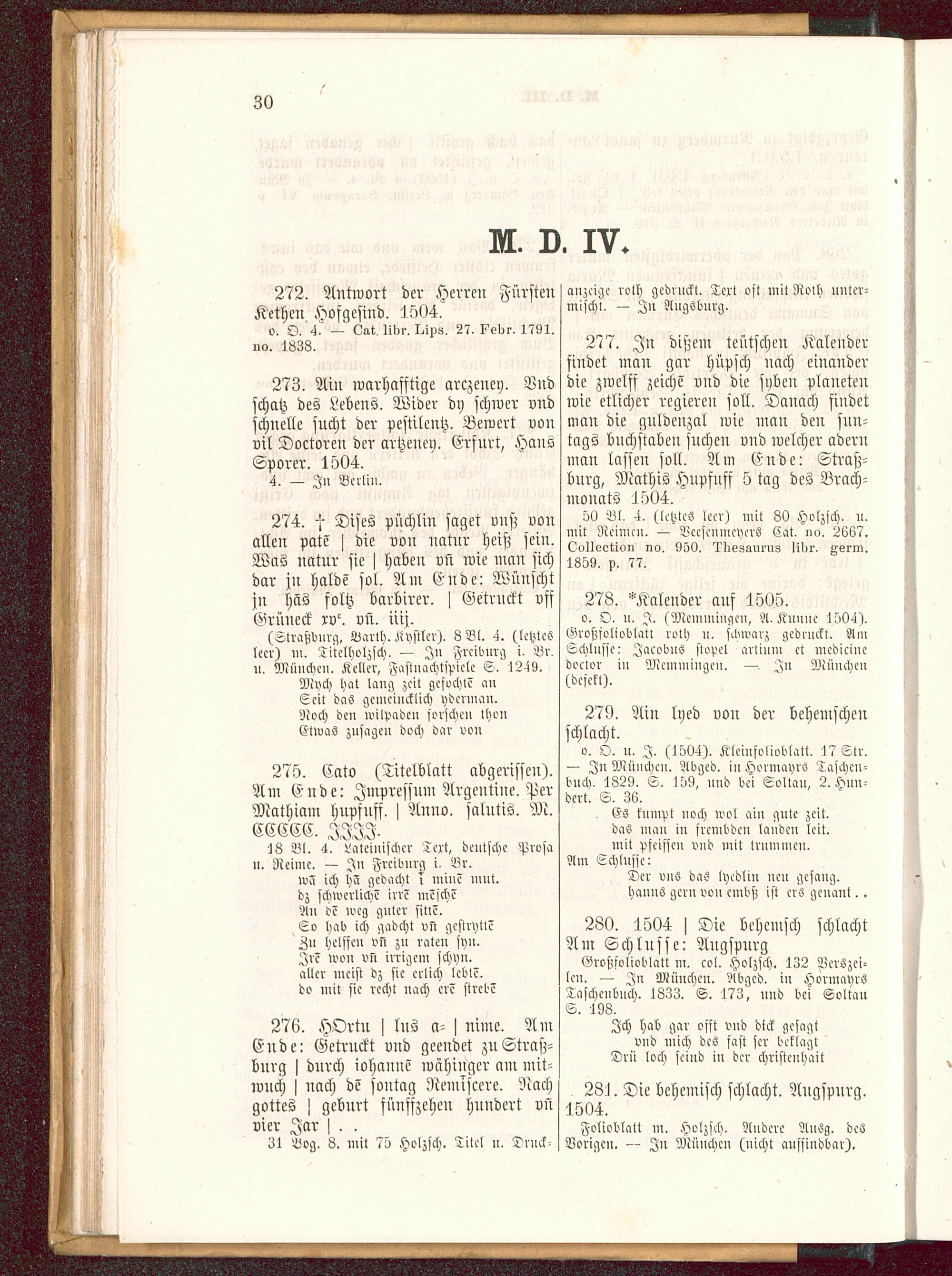 o. O. u. I. (1504). Kleiufolioblatt. 17 Str.— Ju München . Abged. in Hormaurö Taschen-buchs 1829. S. 159, und bei Soltau , 2. Hun-dert. S. 36.