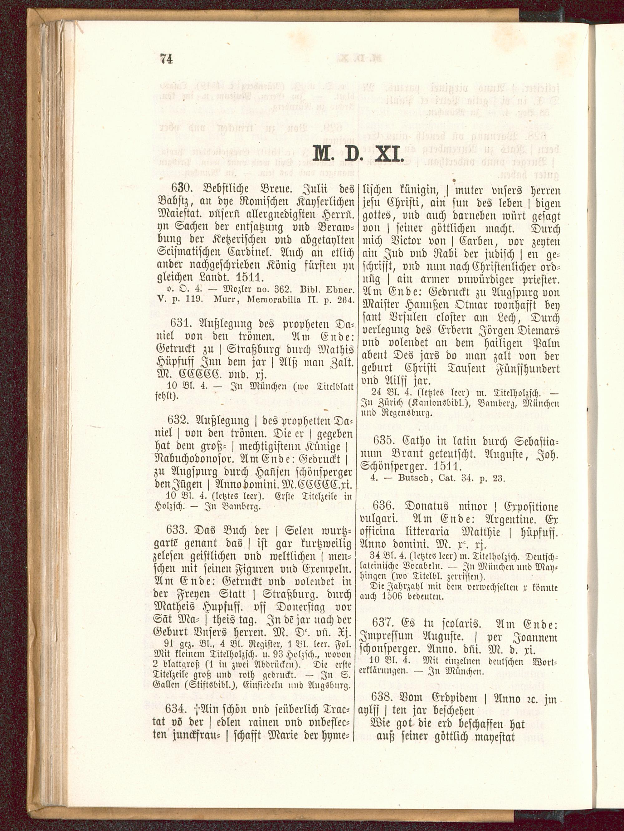 630. Bebstliche Brene. Julii desBabstz, an dye Römischen KayserlichenMaiestat. vnsern allergncdigsten Herrn,yn Sachen der entsatzung vnd Beraw-bung der Ketzerischen vnd abgetayltcnScismatischcn Cardinel. Auch an etlichander nachgeschrieben König fürsten yngleichen Landt. 1511.