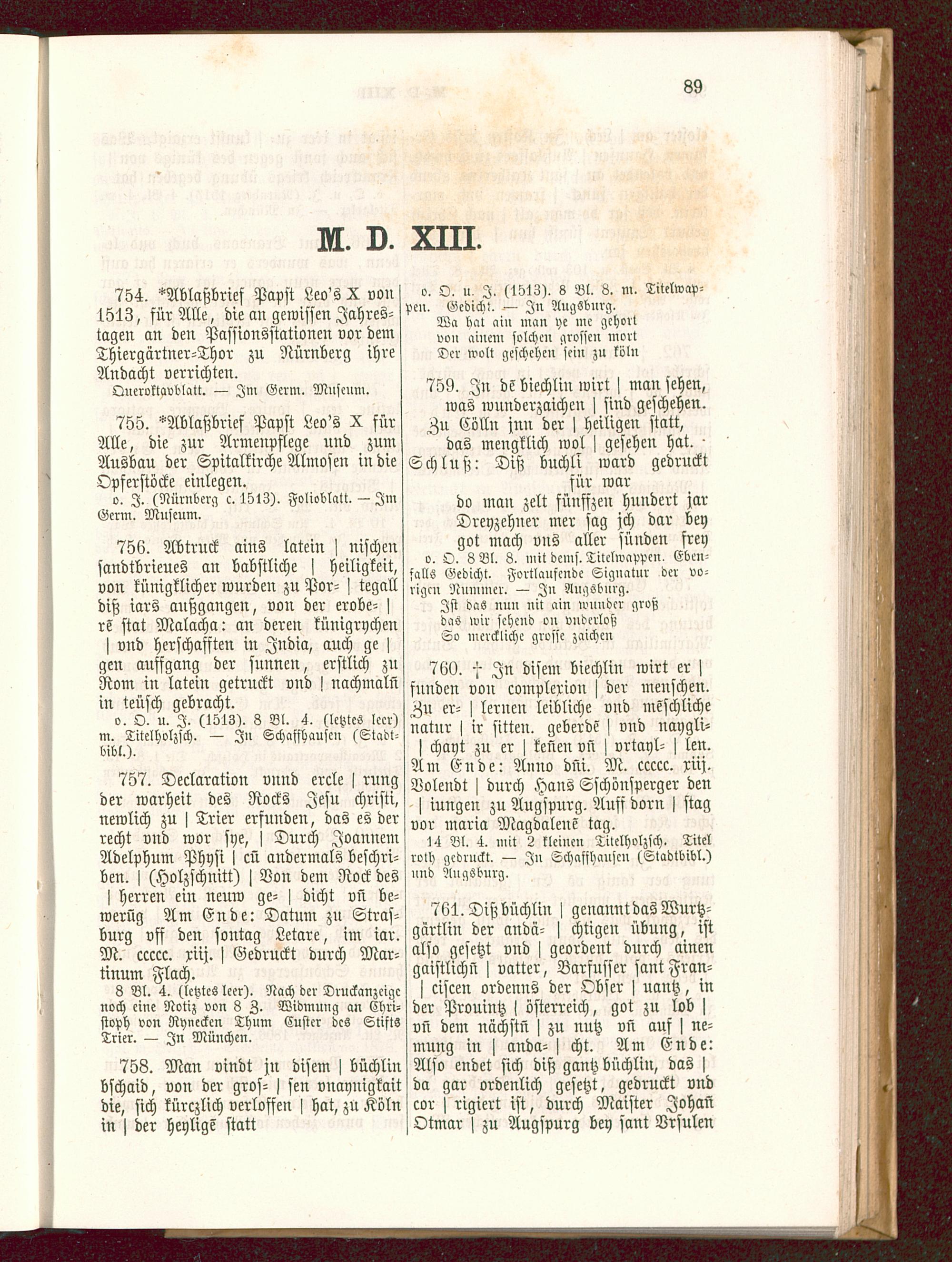 755. "Ablaßbrief Papst Leo's X fürAlle, die zur Armenpflege und zumAusbau der Spitalkirche Almosen in dieOpferstöcke einlegen.