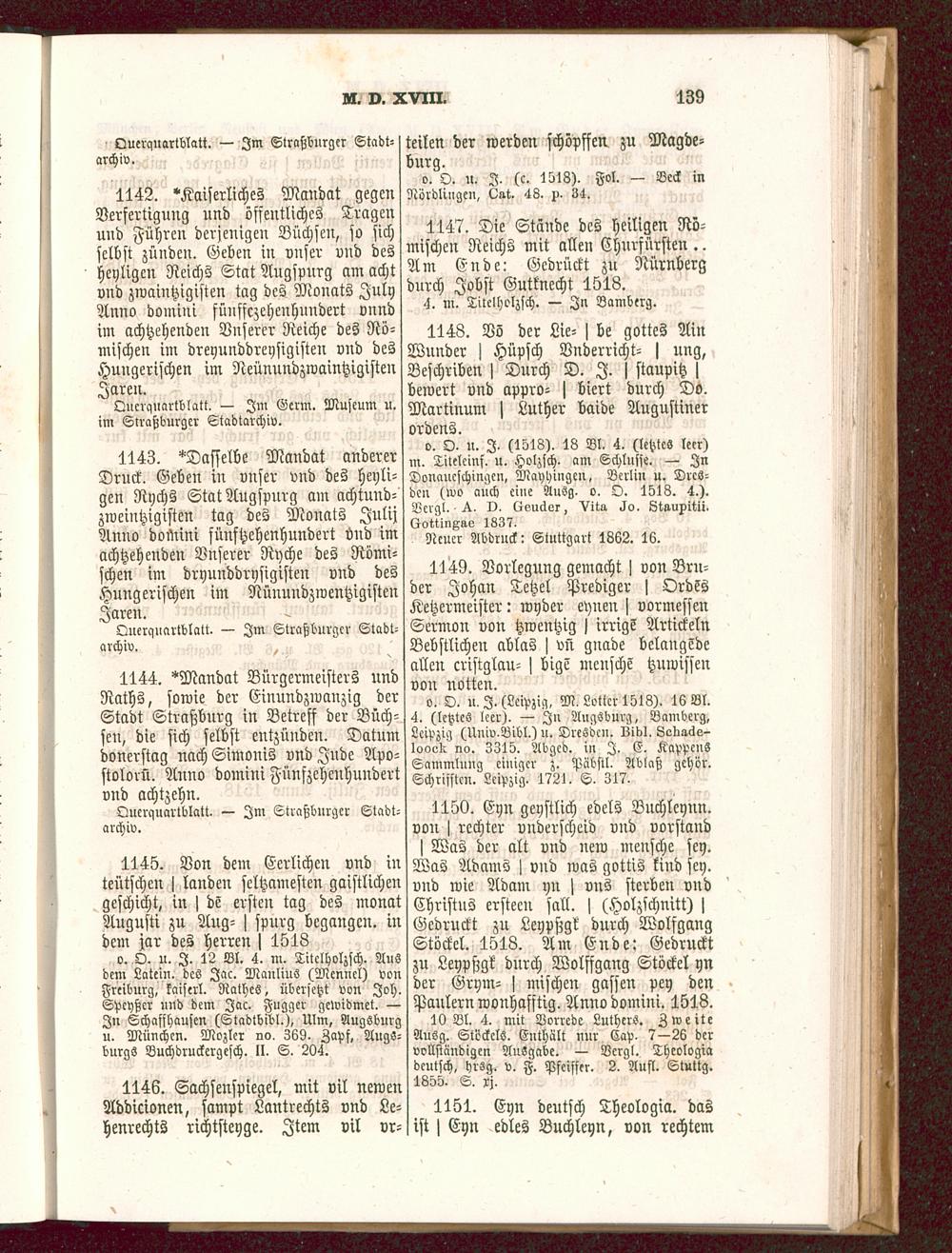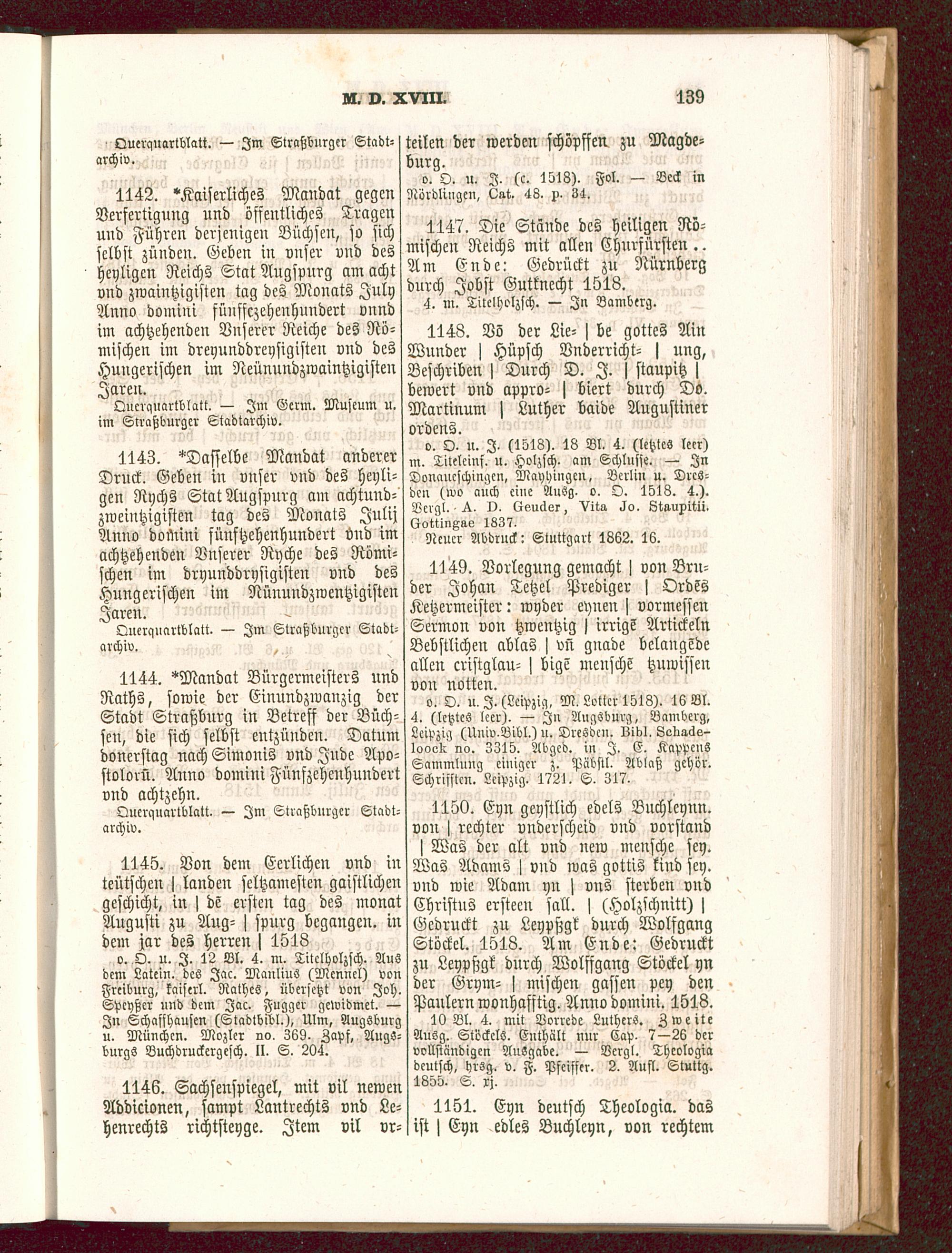 1144. "Mandat Bürgermeisters undRaths, sowie der Einundzwanzig derStadt Straßburg in Betreff der Büch-sen, die sich selbst entzünden. Datumdonerstag uach Simouis vnd Jude Apo-stolorü. Anno domini Fünfzeheuhundertvnd achtzehn.