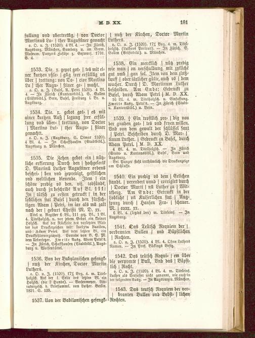 o. O. u. I. (1520). 4 Bl. 4. m. Titeleinf.Luther als Verfasser nicht genannt, wie auch inder folgenden Ausg. — In Augsburg U.München .