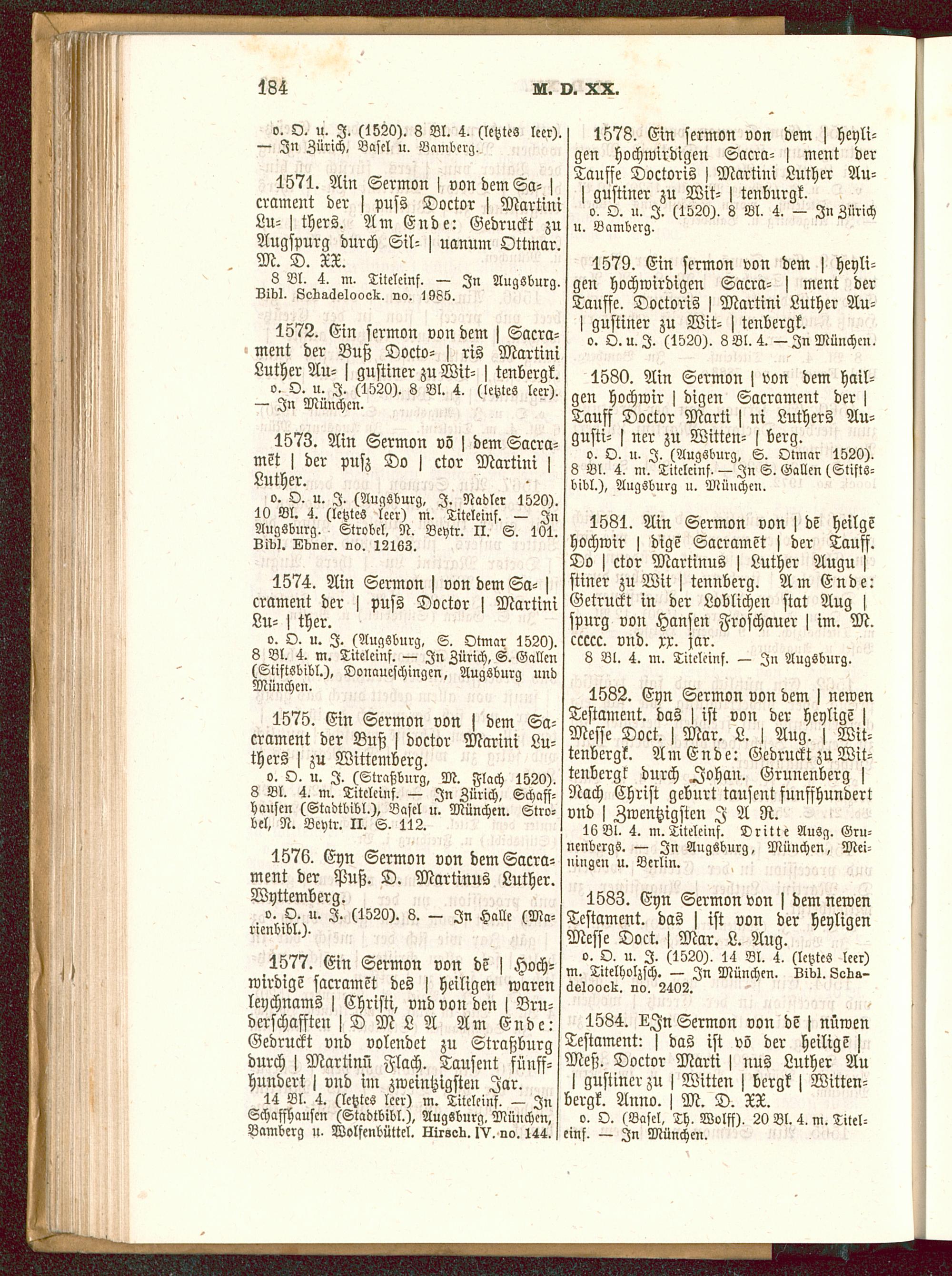 1576. Eyn Sermon von demSacra-ment der Puß. D. Martinus Luther .Wyttemberg.