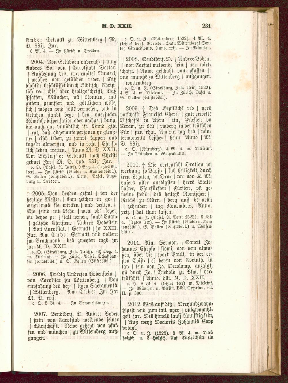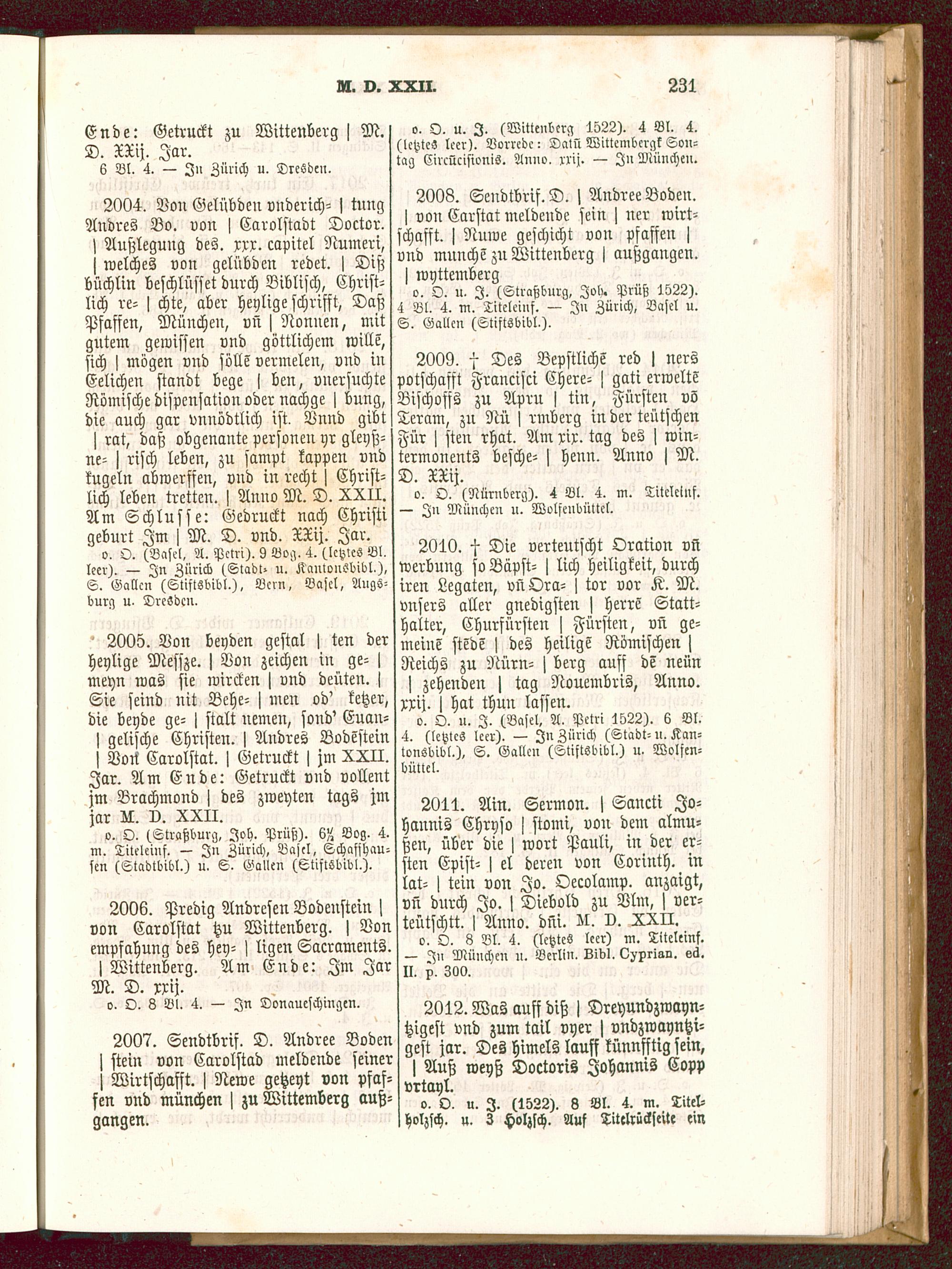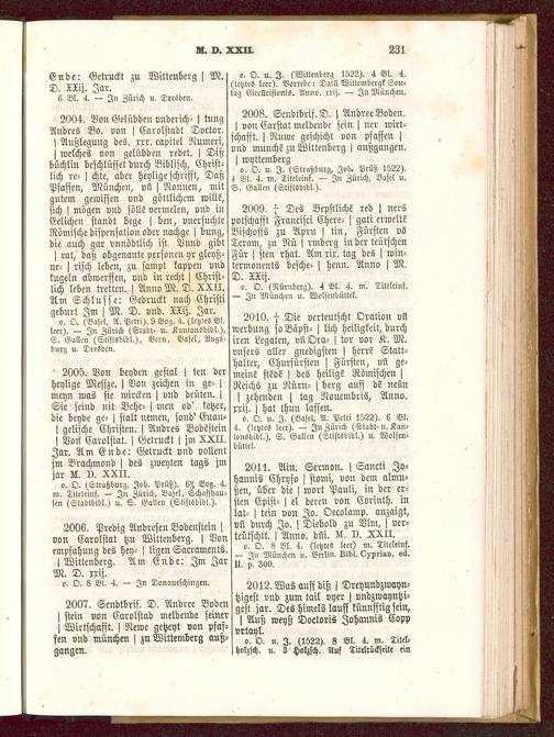 I gelische Christen. > Andres BodesteinI VoN Carolstat. i Getruckt > jm XXII.Jar. Am Ende: Getruckt vnd vollentjm Brachmond j des zweyten tags jmjar 5l. v. XXII.
