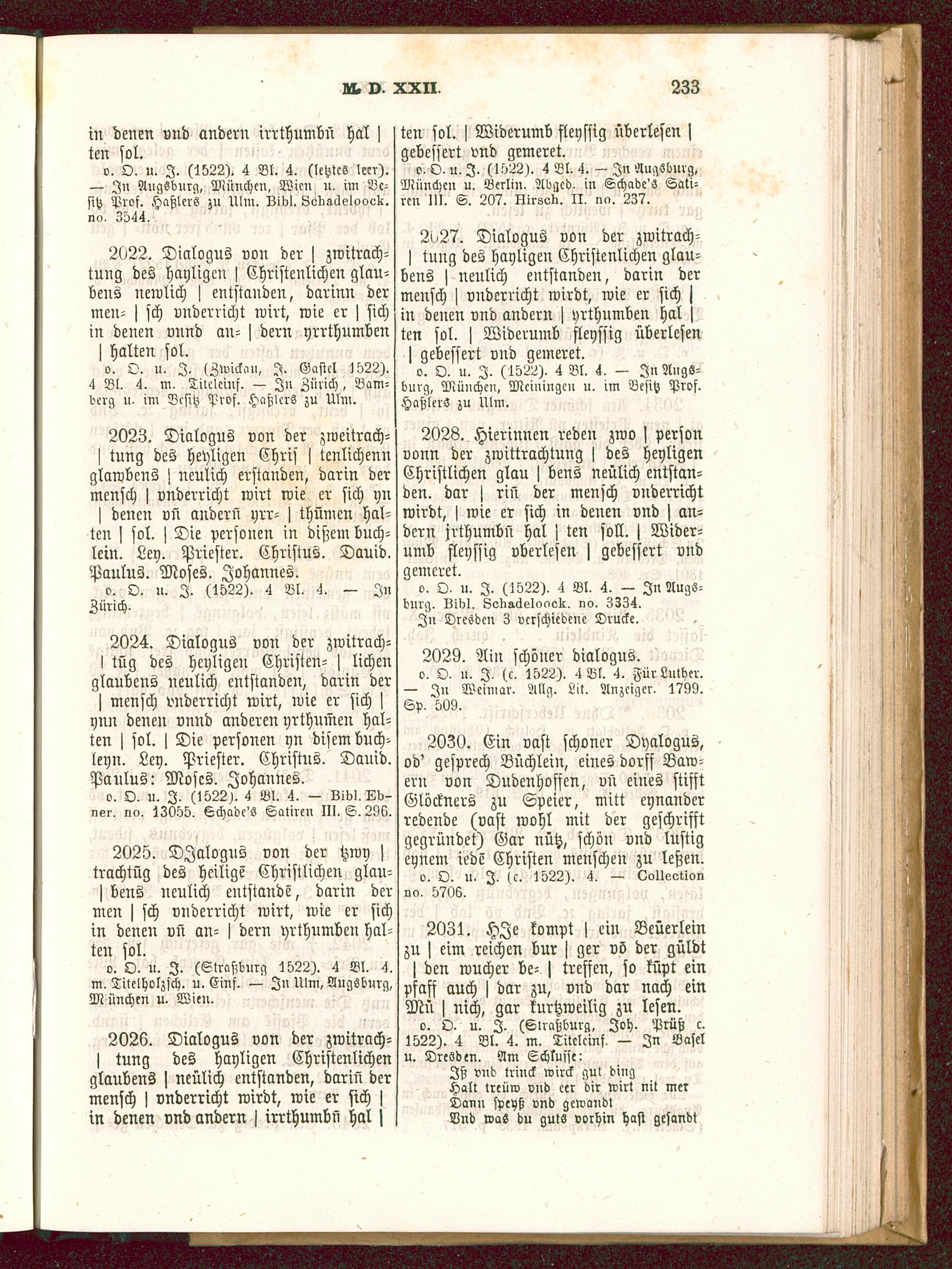 2030. Ein vast schöner Dyalogus,od' gesprech Büchlein, eines dorff Baw-ern von Dndenhoffcn, vn eines stifftGlöckners zu Speier, mitt eynanderredende (vast wohl mit der geschrifstgegründet) Gar nütz, schön vnd lustigeynem iede Christen menschen zu leßen.