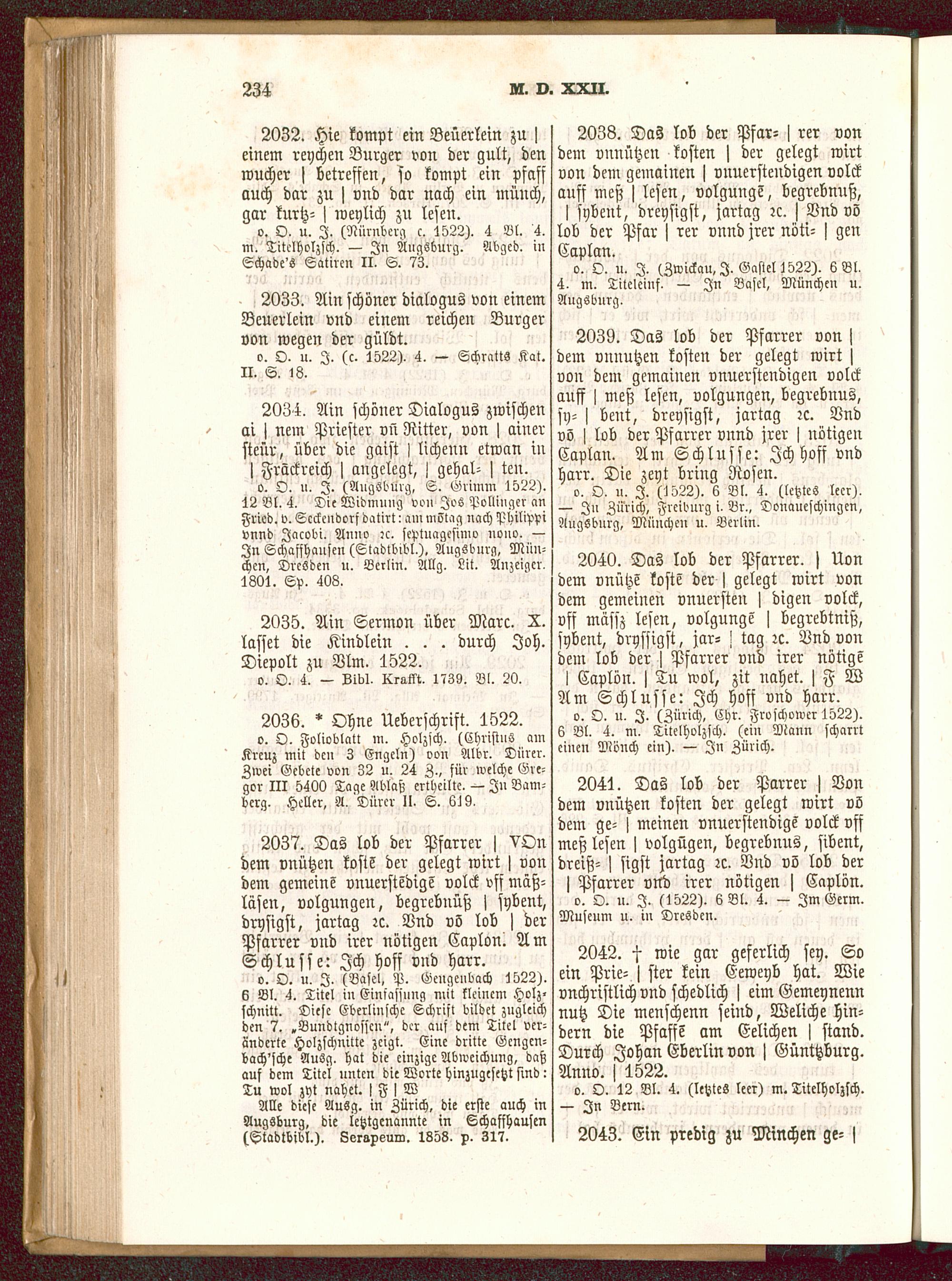 j Pfarrer vnd irer nötigen j Caplön.o. O. u. I. (1522). 6 Bl. 4. — Im Germ.Museum u. in Dresden .