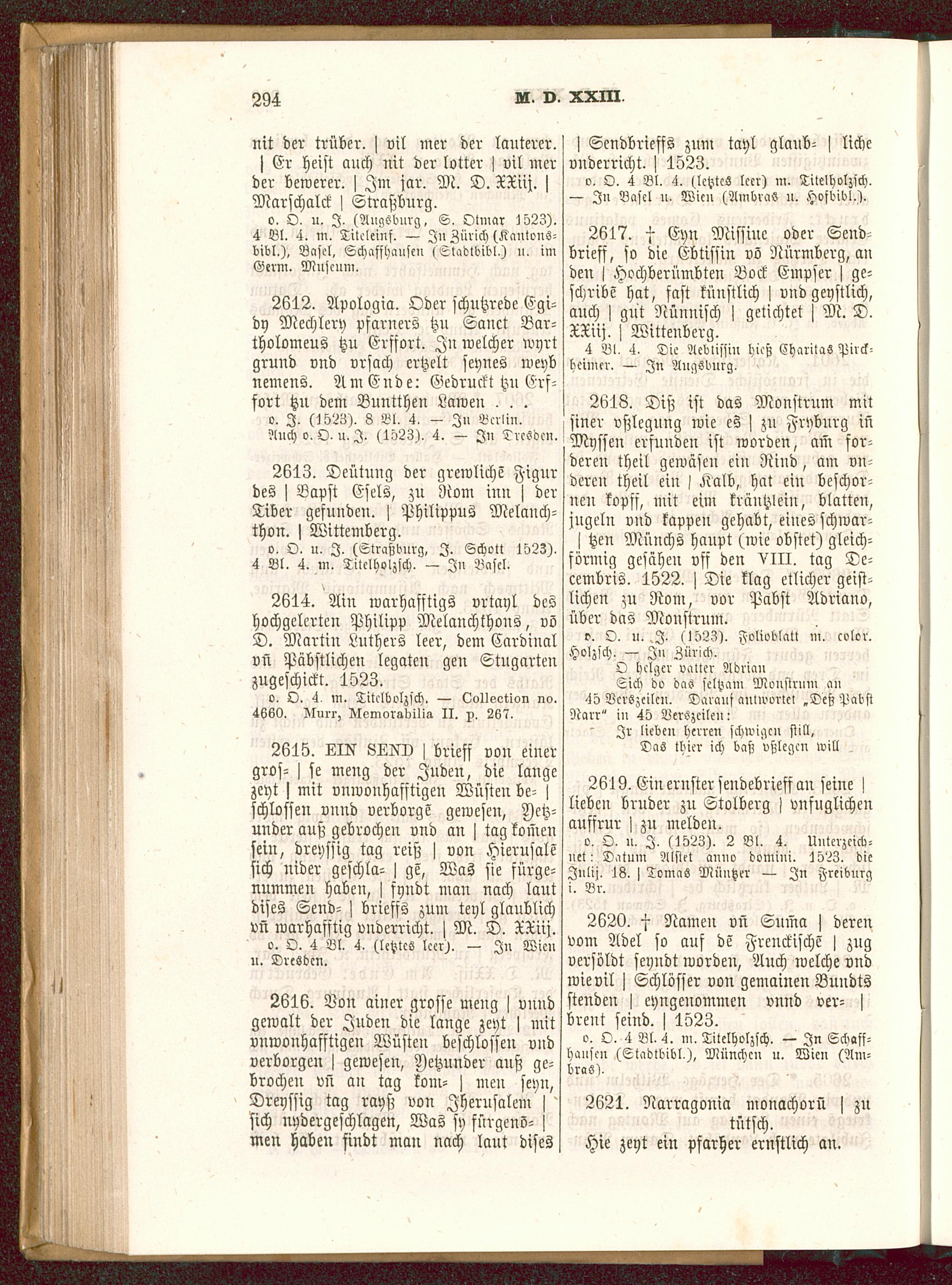 2614. Ain warhafftigs vrtayl deshochgelerten Philipp Melanchthons , vöD. Martin Luthers leer, dem Cardiualvn Päbstlichen legaten gen Stugarteuzugeschickt. 1523.