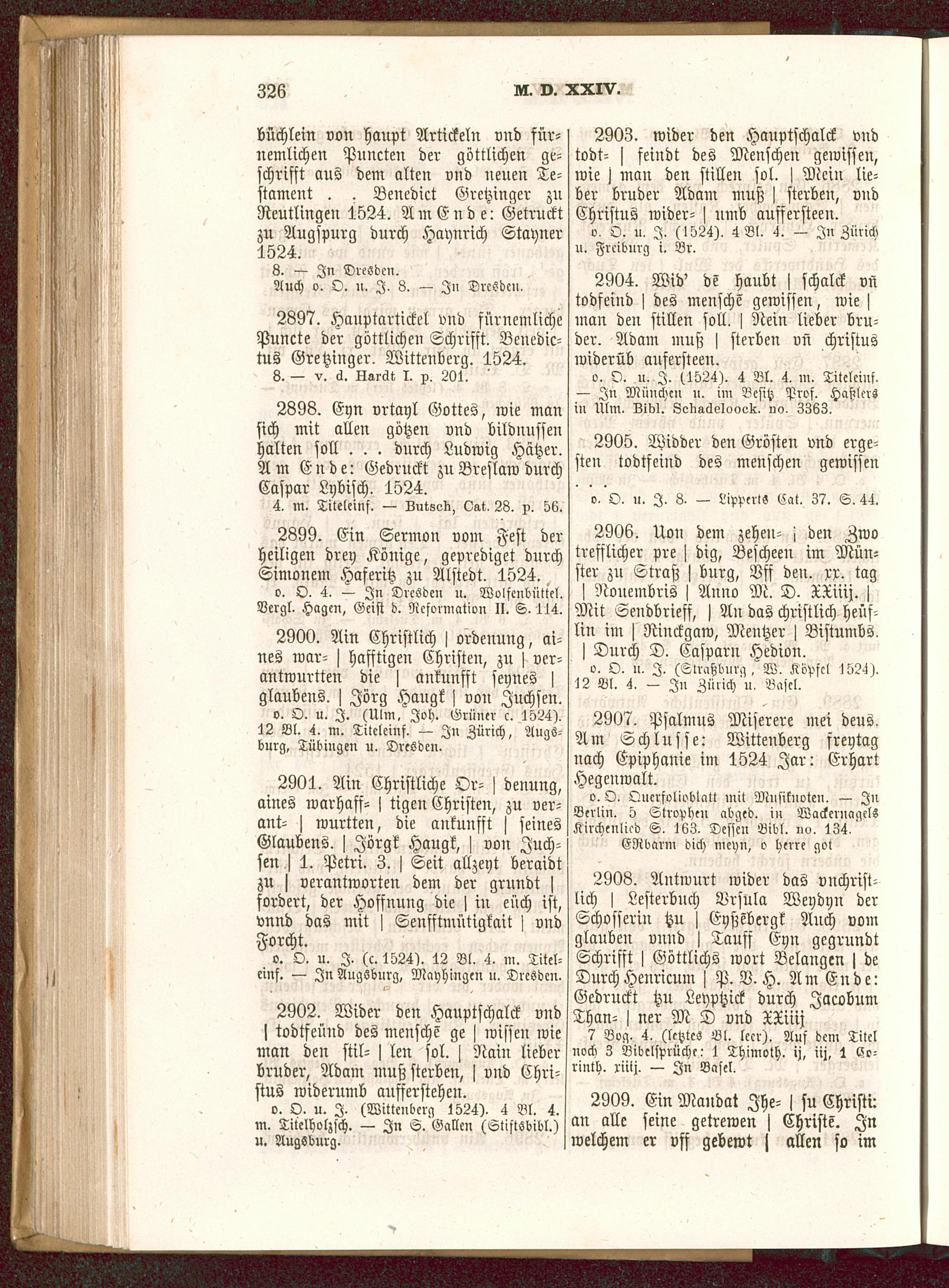 o. O. u. I. (c. 1524). 12 Bl. 4. m. Titel-einf. — In Augsburg, Mayhingen u. Dresden .