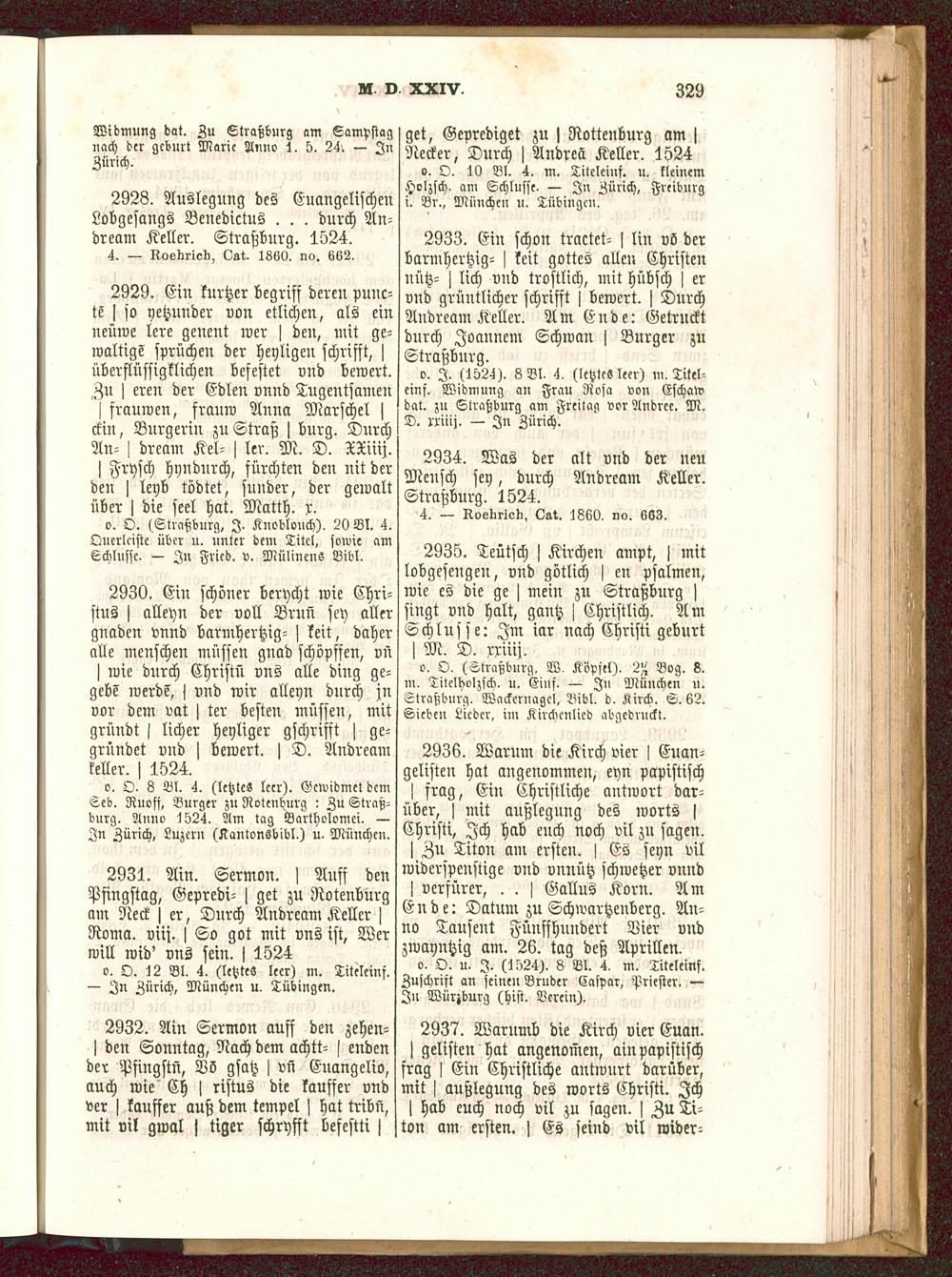 2928. Auslegung des EuangelischenLobgesangs Benedictus . . . durch An-dream Keller. Straßburg . 1524.
