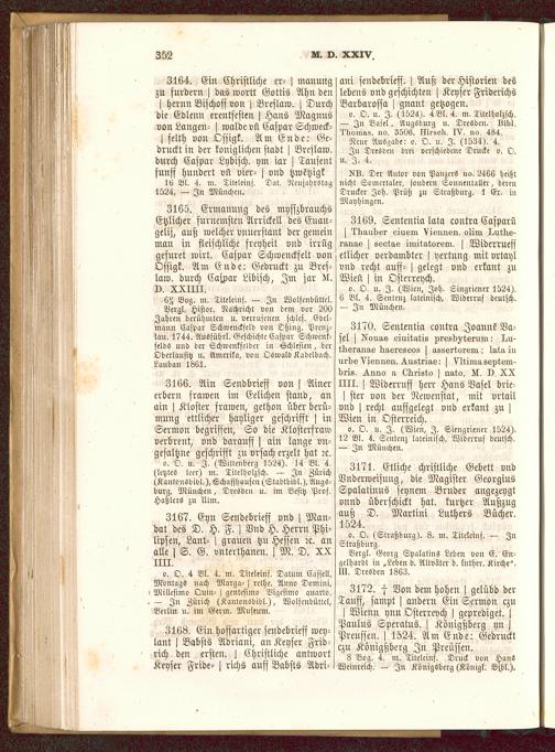 o. O> u. I. (Wien , Joh. Singriener 1524).6 Bl. 4. Sentenz lateinisch, Widerruf deutsch.