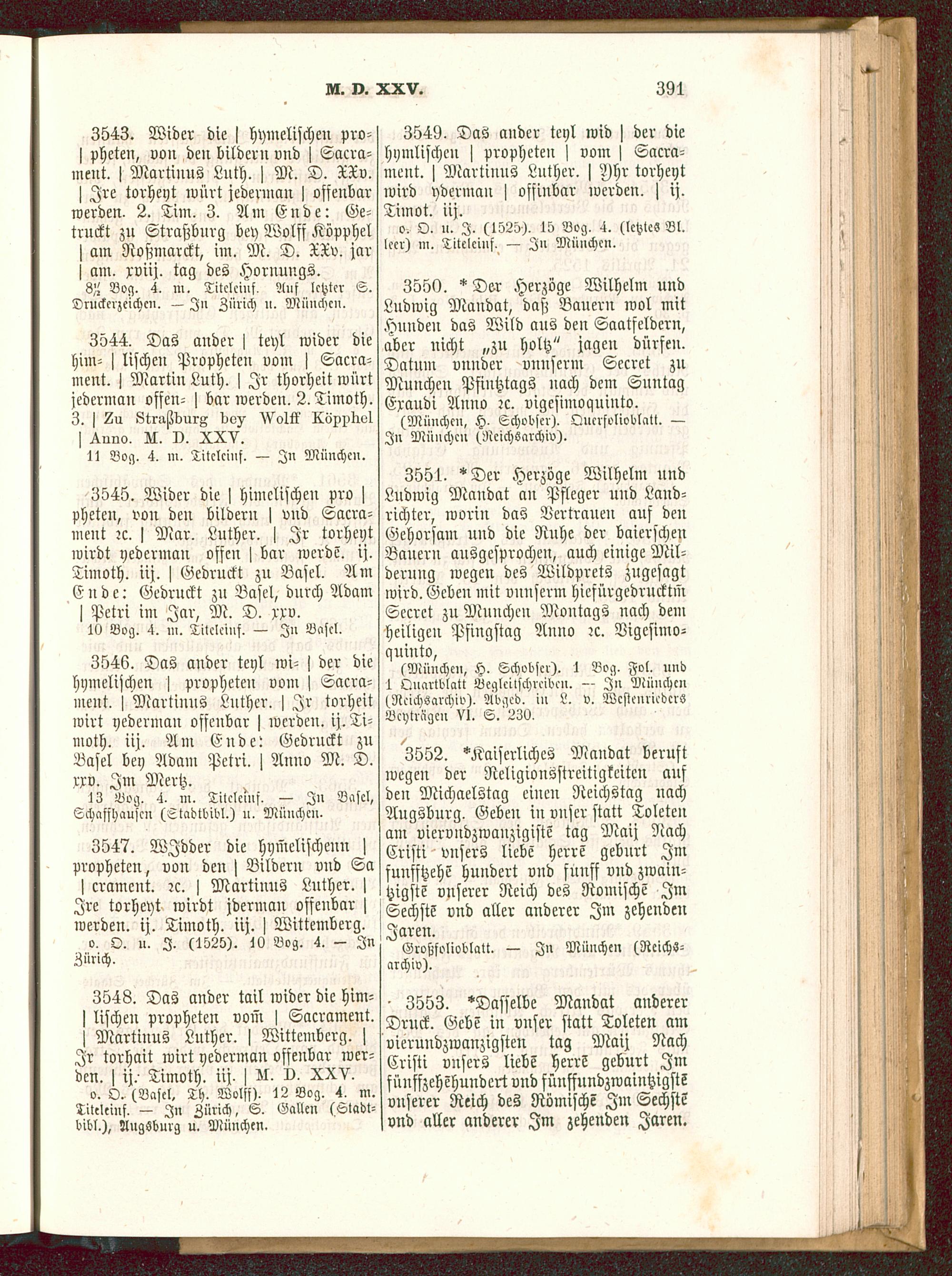 - 3553. -Dasselbe Mandat andererDruck. Gebe iu vuser statt Toleten amvierundzwanzigsten tag Maij NachCristi vnsers liebe herrö geburt Imfünfzehnhundert vnd fünffnndzwaintzigste'vnserer Reich des Römische Im Sechstevnd aller anderer Im zehenden Jaren.