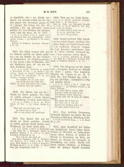 3605. Ein schöns neuwes Lied vonder Schlacht newlich vor Pauia gesche-hen j am tag Mathie im Jar Tausentvn fünffhundert vn fünffuudzwaintzig.in dem newen j thon vö Mailand, oderdes Wyßbecten thon, od'' lvie mä diesiben Stalbrüd' singt.