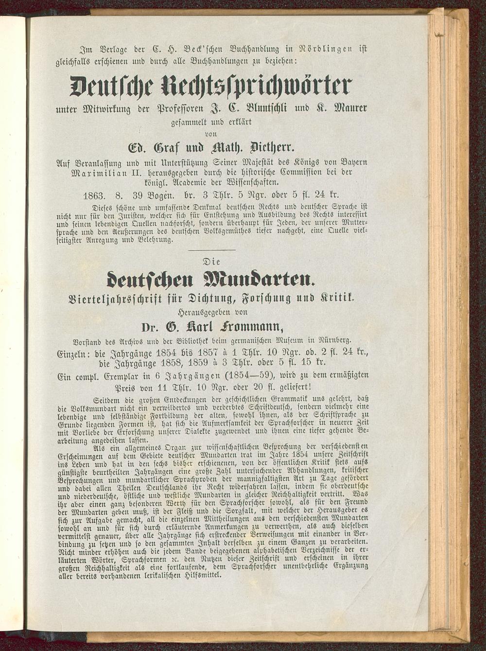 Einzeln: die Jahrgänge 1854 bis 1857 5 1 Thlr. 10 Ngr. od. 2 fl. 24 kr.,die Jahrgänge 1858, 1859 ä 3 Thlr. oder 5 fl. 15 kr.