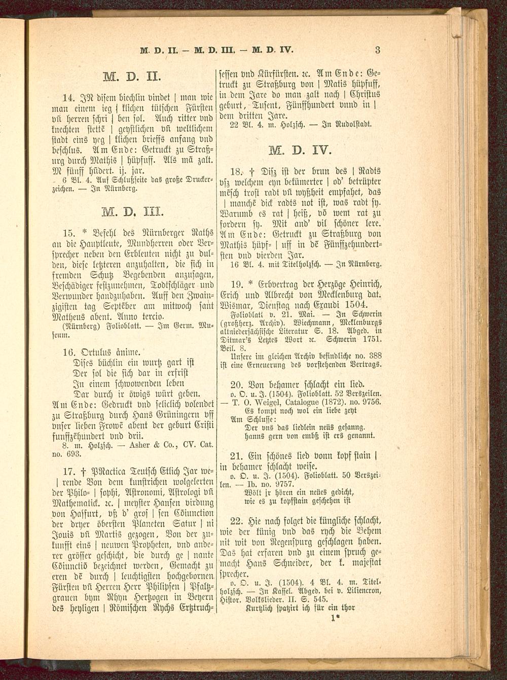 o. O. u. I. (1504). Folioblatt. 52 Verszeilen.— 0. >VeiMl, <ÄtÄloMö (1872). uo. 9756.